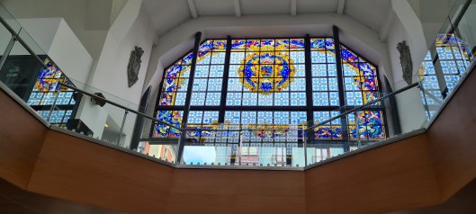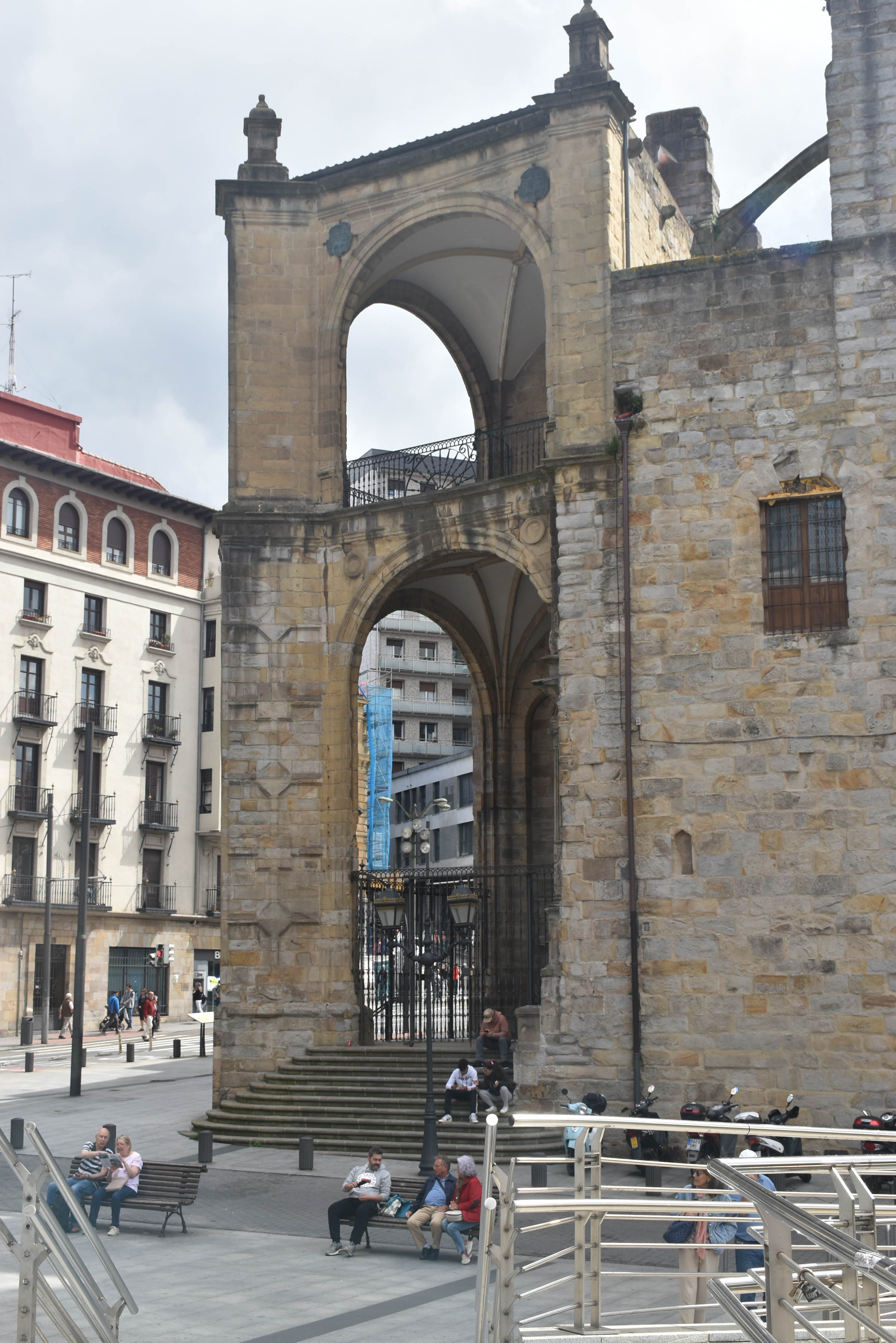 Justo al lado está la bonita iglesia de San Antón (la veremos al día siguiente, nuestra última mañana en Bilbao). Levantada en el solar de la antigua lonja medieval, junto a la ría y sobre una zona rocosa que marcó el crecimiento de la villa. En este lugar estaba el alcázar y al derribarlo, la iglesia fue consagrada en 1433, es la iglesia más antigua de Bilbao. A lo largo de los siglos, su estructura ha ido incorporando elementos de distintas épocas.