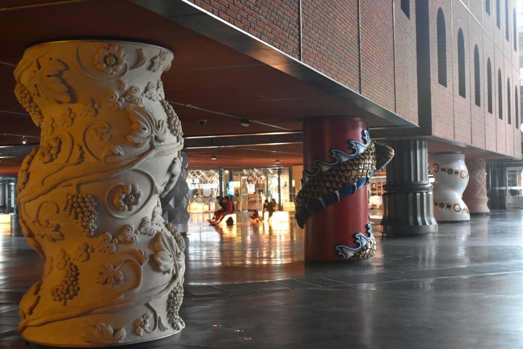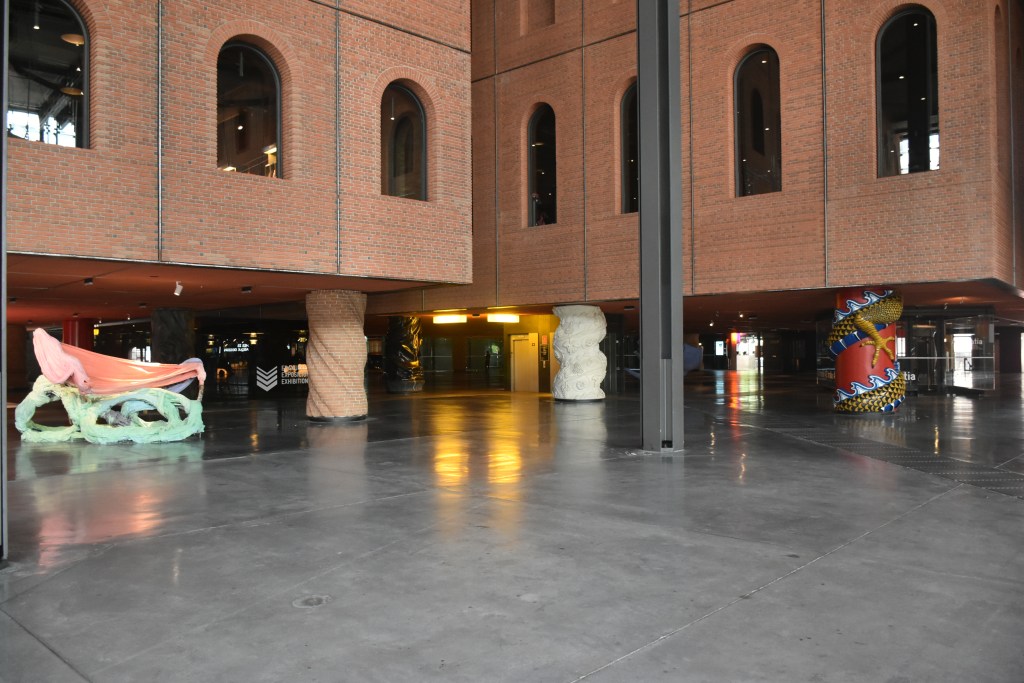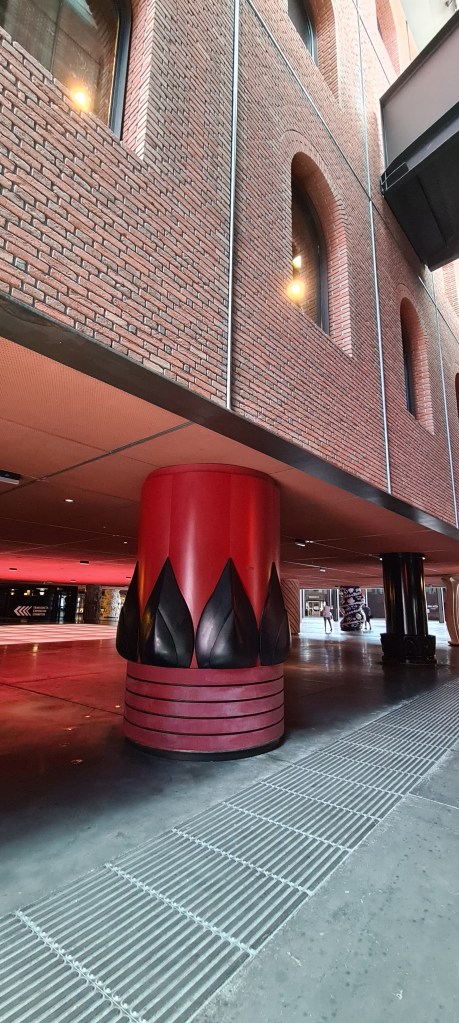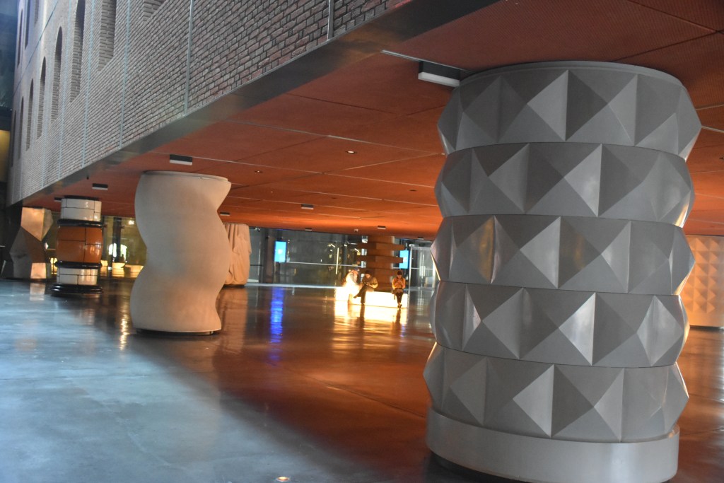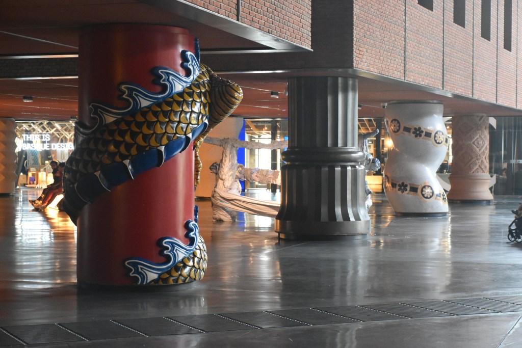Lo que verdaderamente llama la atención del interior de la Alhondiga son sus originales columnas, 43 para ser exactos. Diseñadas también por Philippe Starck, cada una de ellas tiene su propio diseño, combinando a la perfección con el espacio.