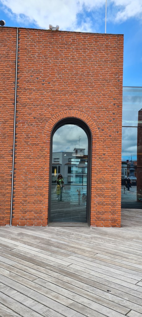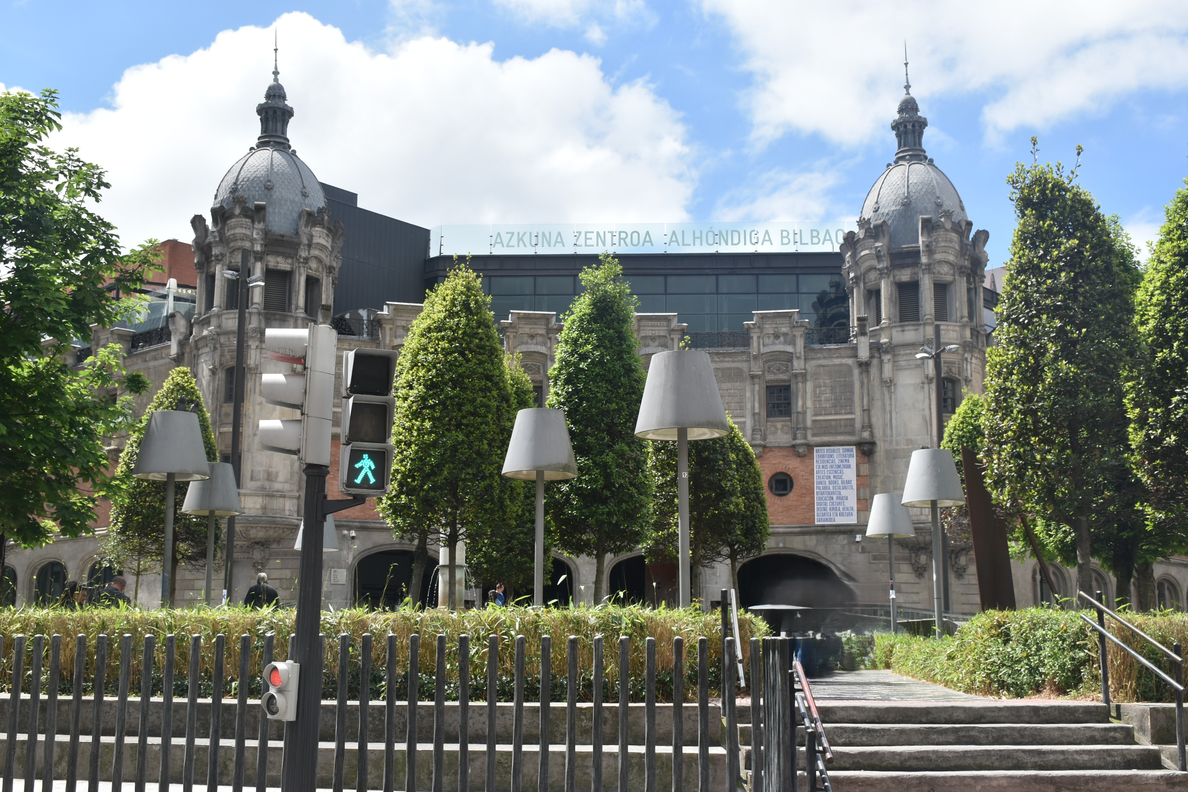 Nuestra tarde comienza en un lugar poco conocido, pero que es increíble y no puedes perderte, la Alhondiga. Es un centro cultural y deportivo, “Azkuna Zentroa”. Fue construida a comienzos del siglo XX como almacén municipal de vinos, un edificio industrial emblemático del Ensanche. Tras décadas de uso y un largo periodo de abandono, fue completamente transformada en el siglo XXI en un centro cultural y de ocio, gracias al proyecto de renovación del diseñador francés Philippe Starck, que mantuvo la estructura original y la reinterpretó con un lenguaje contemporáneo.