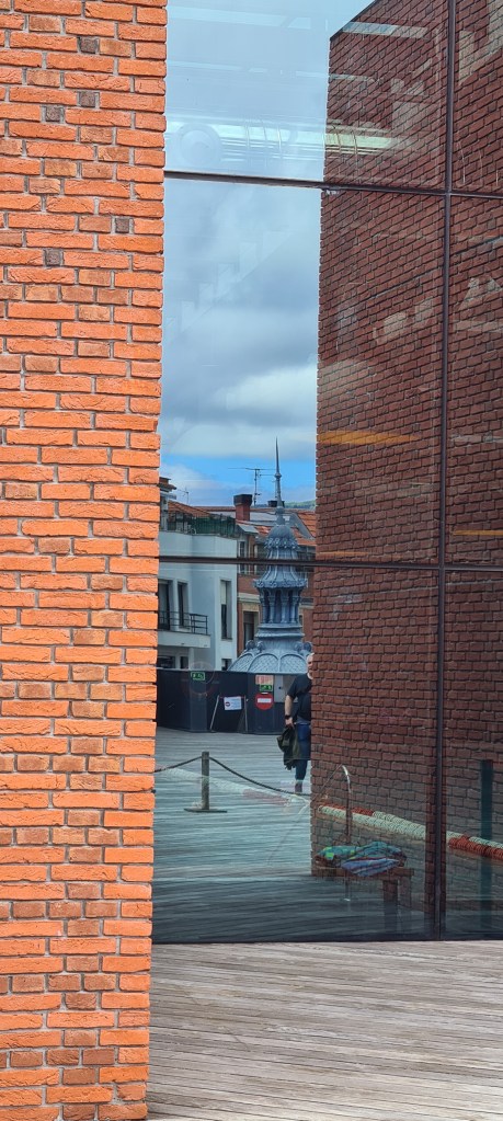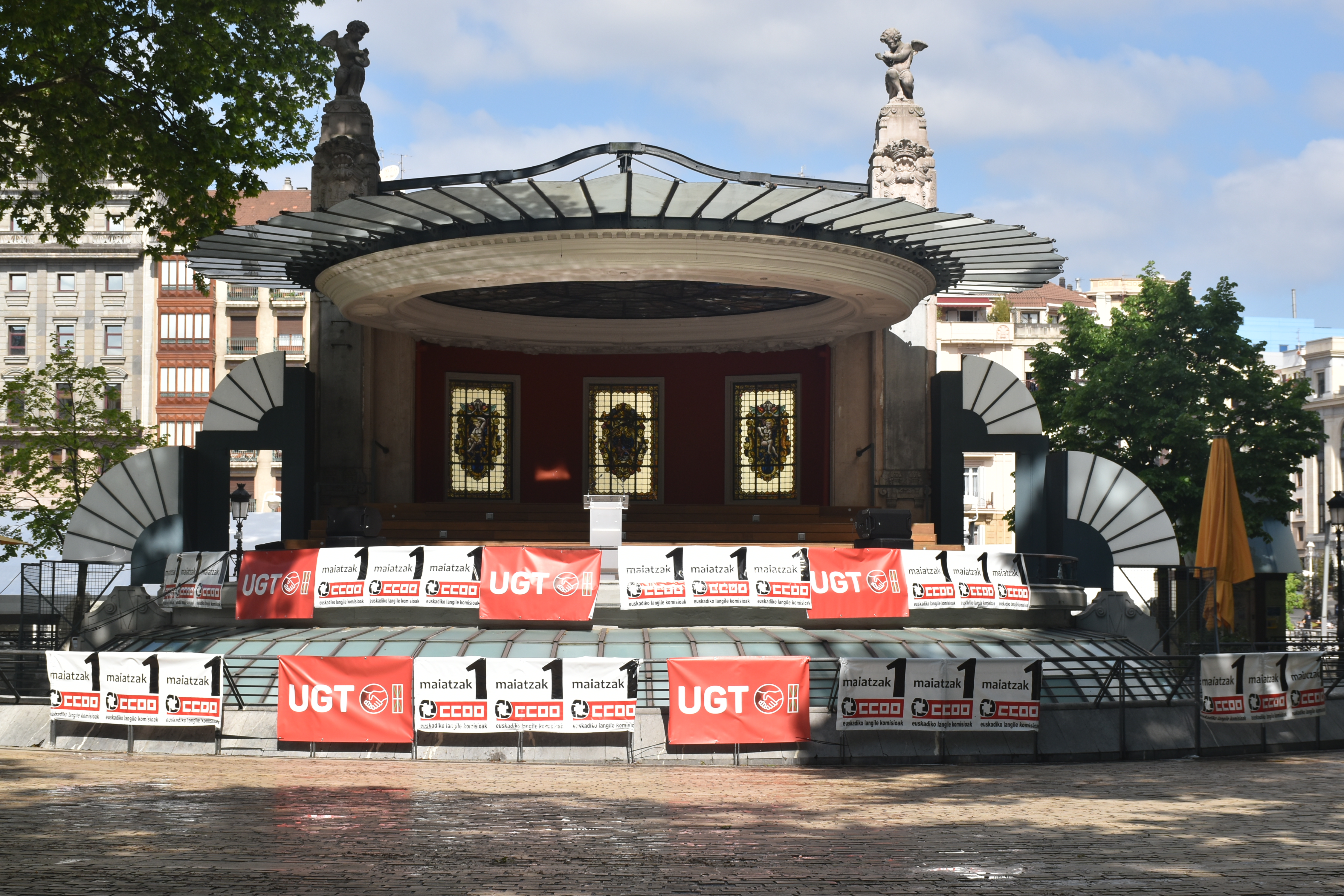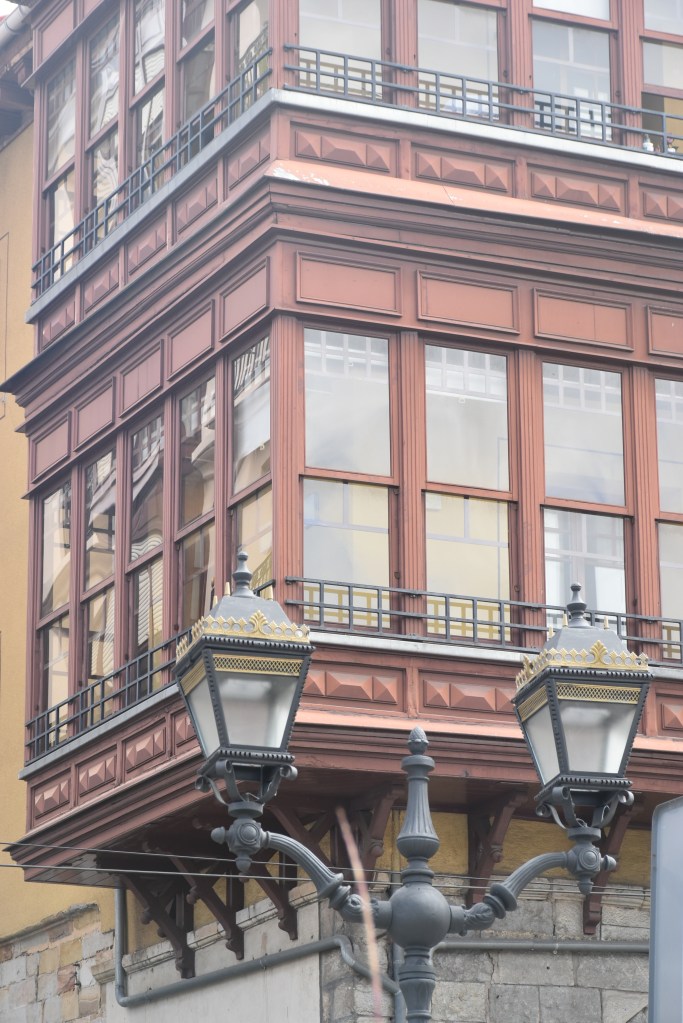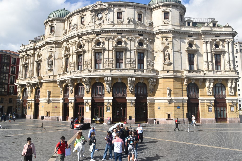 Nos encontramos en nuestro hotel con nuestros amigos para ir juntos al Teatro Arriaga, que es donde comienza el Free Tour que hemos reservado. Es 1 de mayo y hay manifestación. Antes de empezar nos da tiempo a fijarnos en los pequeños detalles que hacen de Bilbao una ciudad muy bonita.