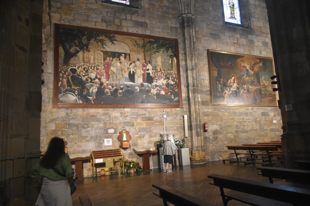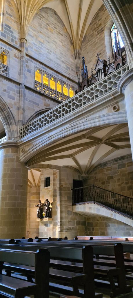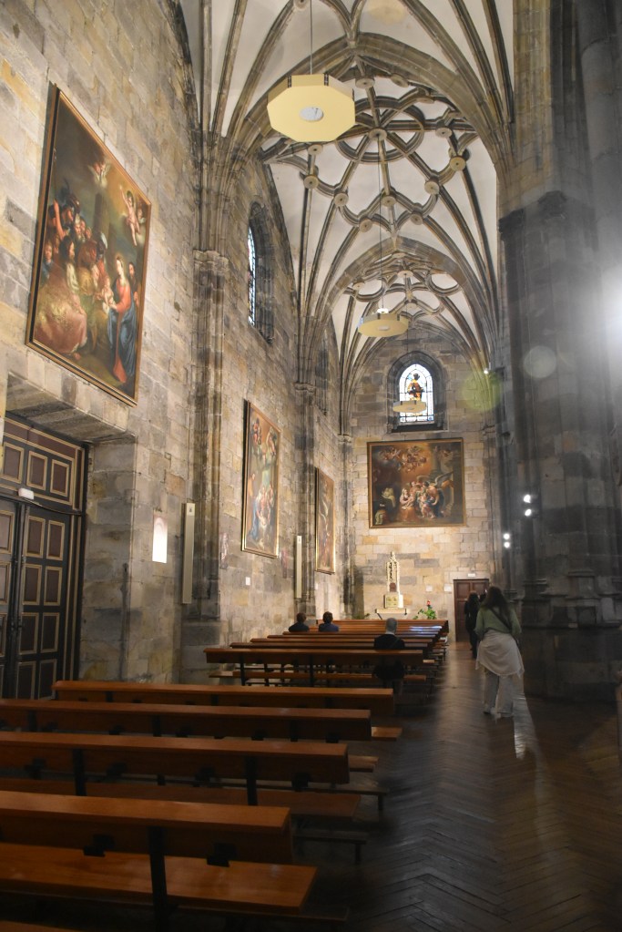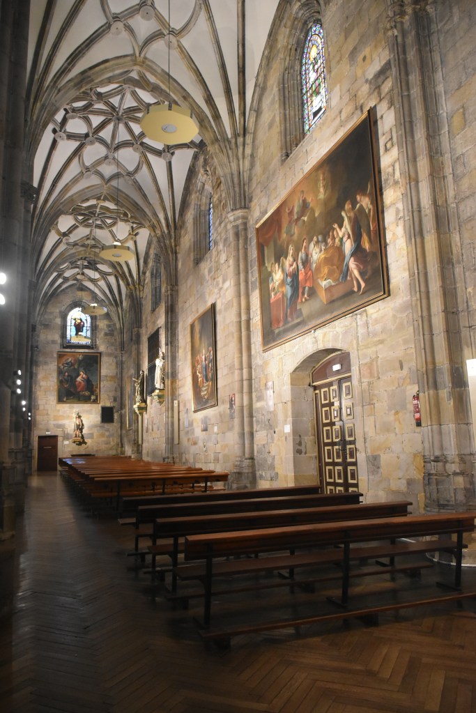 Se queda todo preparado en la recepción del hotel para cuando lleguemos cojamos la maleta y al aeropuerto. Nos queda toda la mañana para llevarnos un buen sabor de boca de Bilbao. Regresamos a la iglesia de San Antón, esa que estaba al lado del Mercado de la Ribera y que solo vimos por fuera en el free tour, en ese artículo hablo un poco de su historia. Ahora enseño un poco el interior.