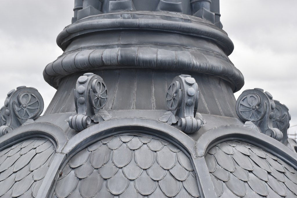 En el exterior, San Antón combina su base gótica con añadidos posteriores que le dan un carácter único. La torre barroca, elegante y reconocible, corona un conjunto que se asienta con firmeza junto a la ría, como si vigilara el puente y el ir y venir del Casco Viejo. El pórtico, las líneas verticales y la piedra clara hablan de un templo que ha sido testigo de la historia de Bilbao, integrándose en su paisaje urbano con una presencia sobria y emblemática.