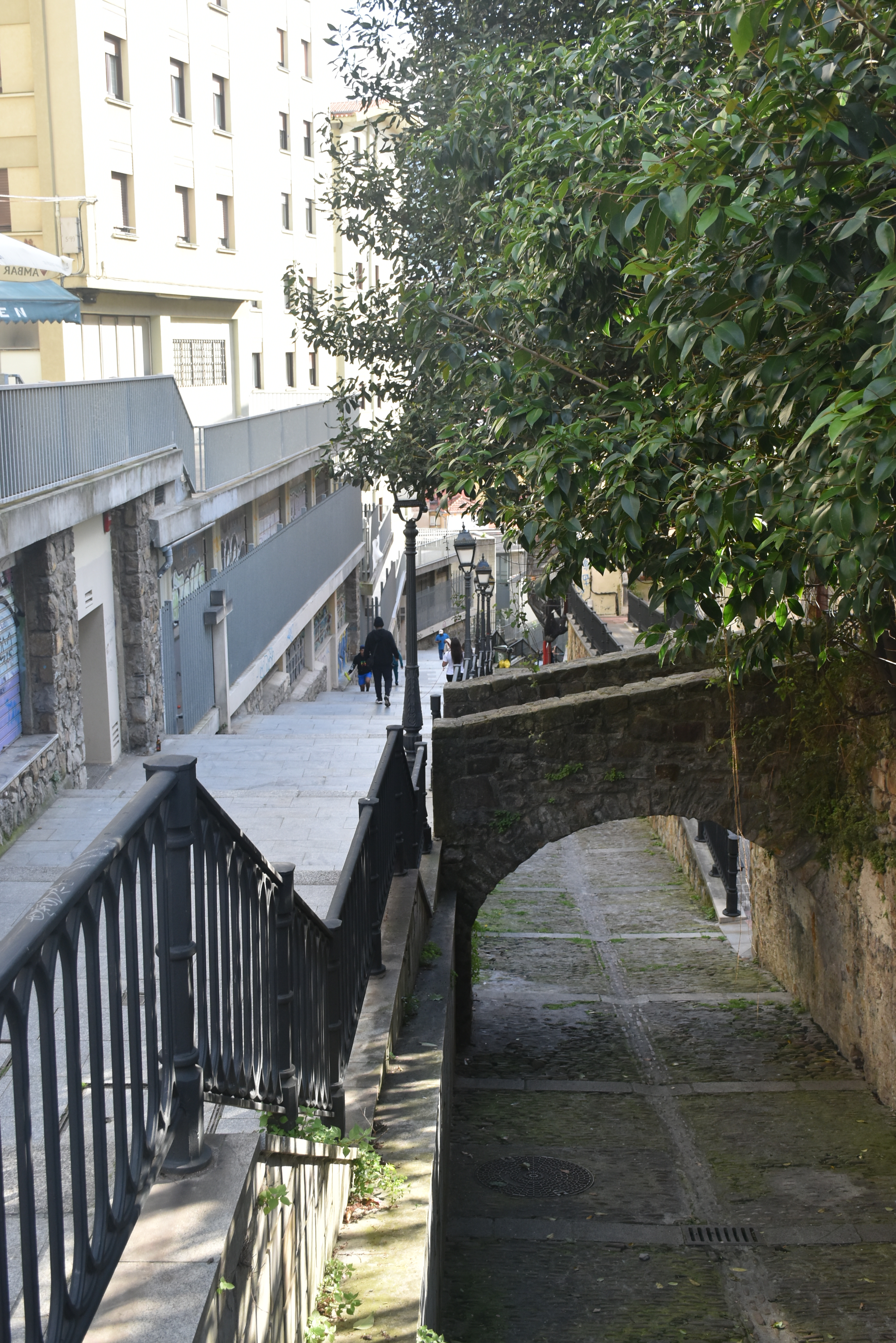 Así llegamos al Casco Viejo a la Plaza de Miguel de Unamuno, allí está el ascensor que por 0,45€ nos subirá a Begoña. Se puede ir andando, pero como hay una cuesta con tramos de escaleras preferimos hacerlo de bajada.