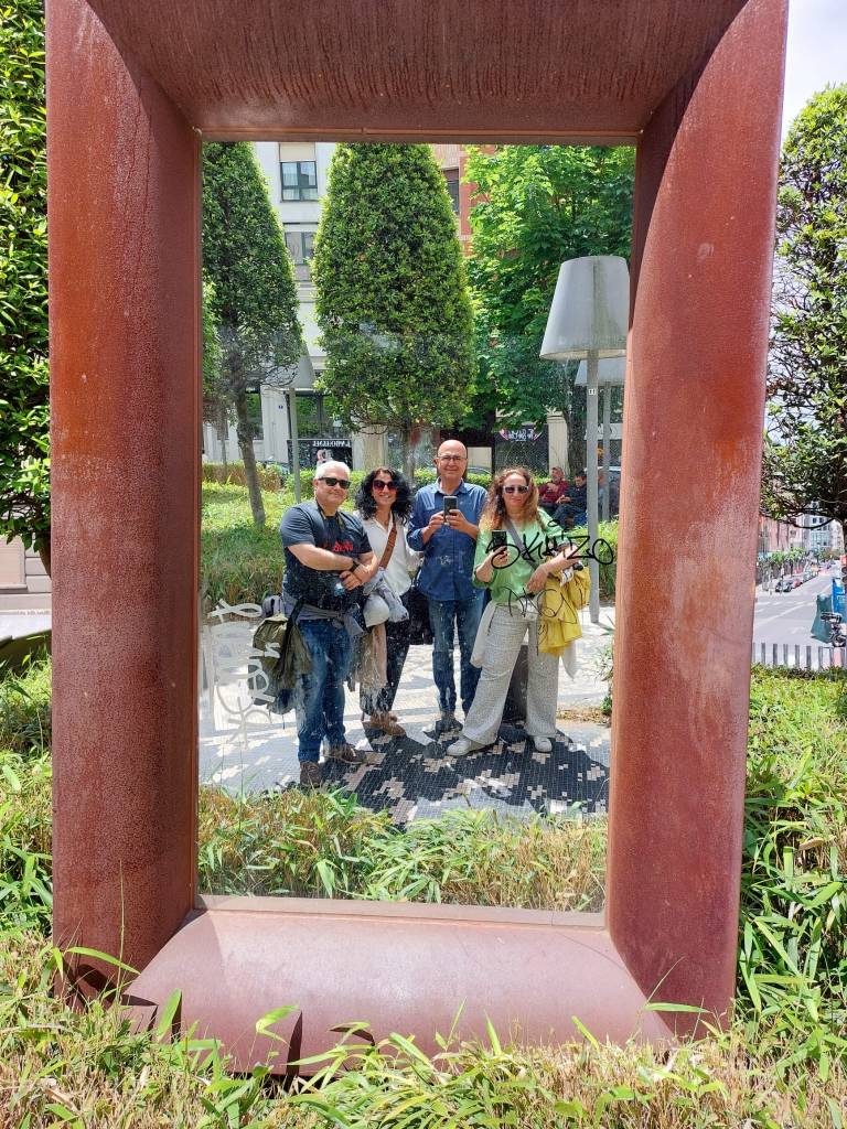 Unas divertidas fotos en el exterior de la Alhondiga hacen que la despedida sea un poco menos dura. Queda pensar en el siguiente viaje juntos: Donostia.