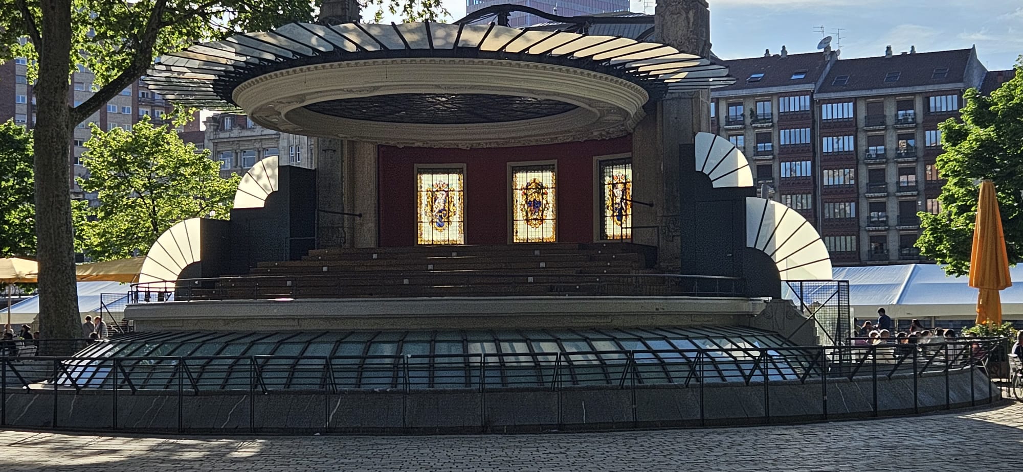 En la visita conocemos datos interesantes sobre el teatro. La segunda parada es en el cercano Parque del Arenal, donde hay un precioso Kiosco, realizado por el mismo arquitecto que el Mercado de la Ribera: Pedro Ispizua. Está inspirado en una concha y está considerado lugar de interés histórico. Se utiliza actualmente para diferentes eventos.