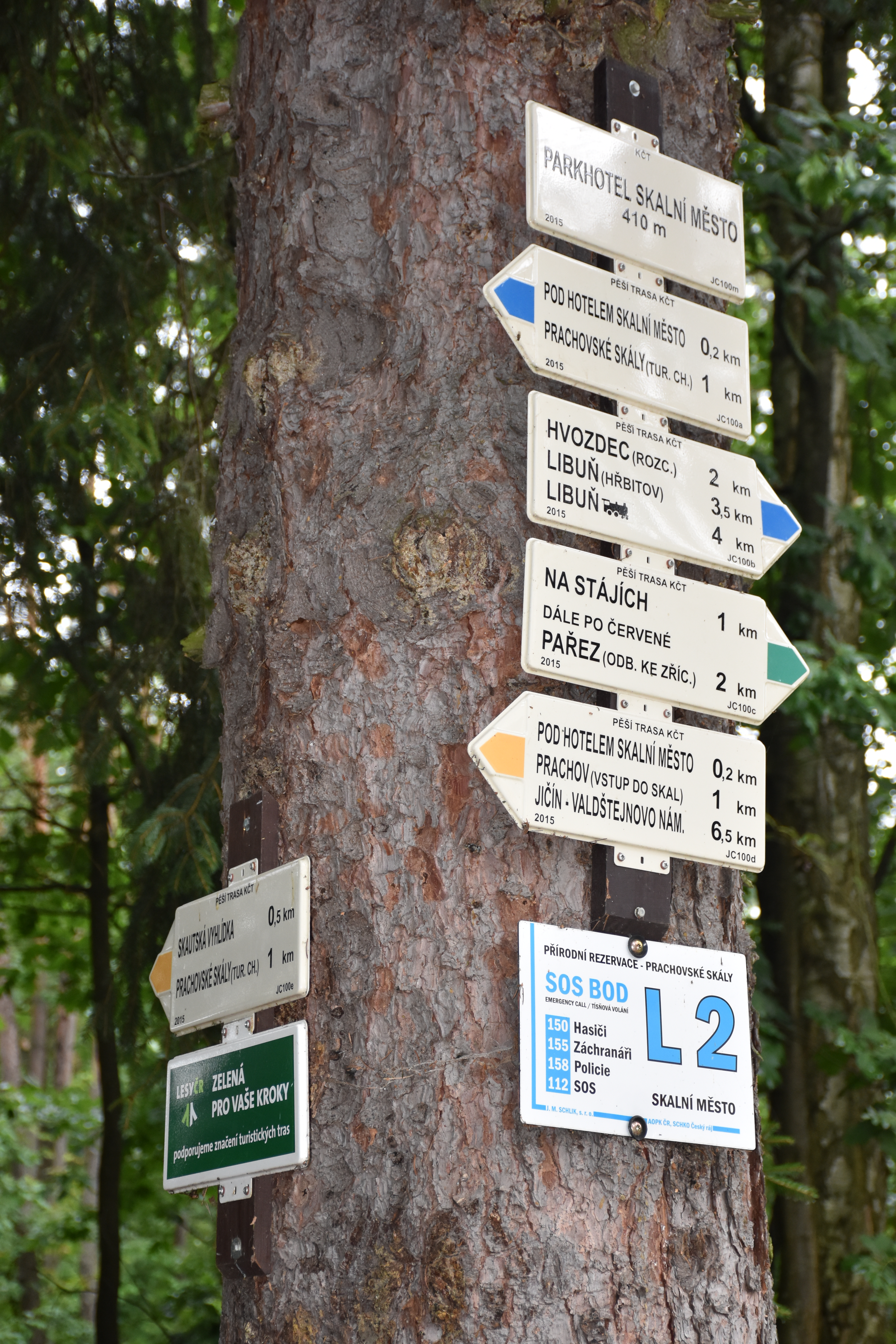 Desde la puerta de nuestro hotel salen muchos recorridos por el Parque y uno de ellos nos lleva directamente a la entrada de Prachovské Skály, donde hay que sacar la entrada 70CZK adultos y 30CZK niños y estudiantes. (Nosotros lo llevábamos incluido en nuestro viaje).
