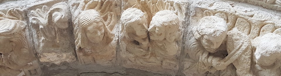 Si vamos dando la vuelta tenemos varios absides y en sus canecillos animales reales y fantásticos y también motivos vegetales.