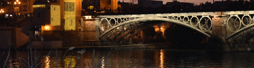 Una vez que habéis llegado aquí, cruzar el Puente de Triana para ver el otro lado del río también iluminado.