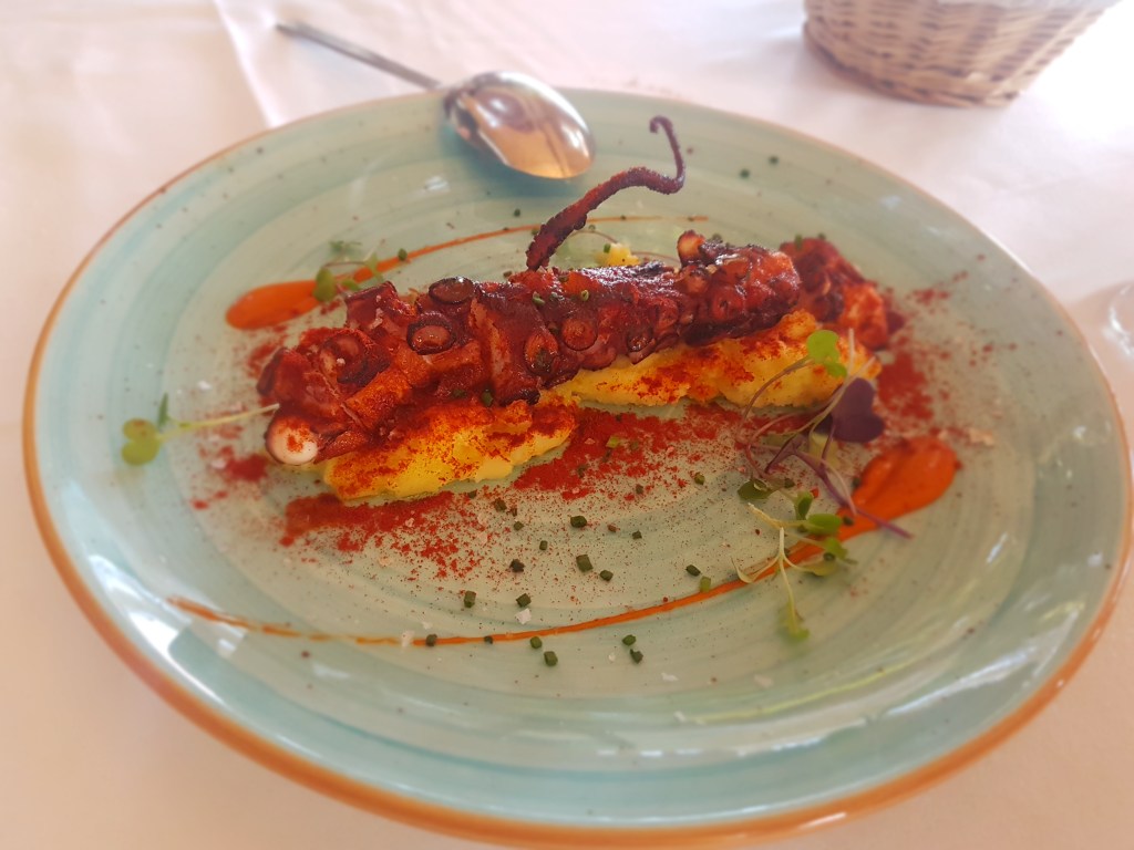 Pulpo a la brasa con cremoso de patata a la albahaca