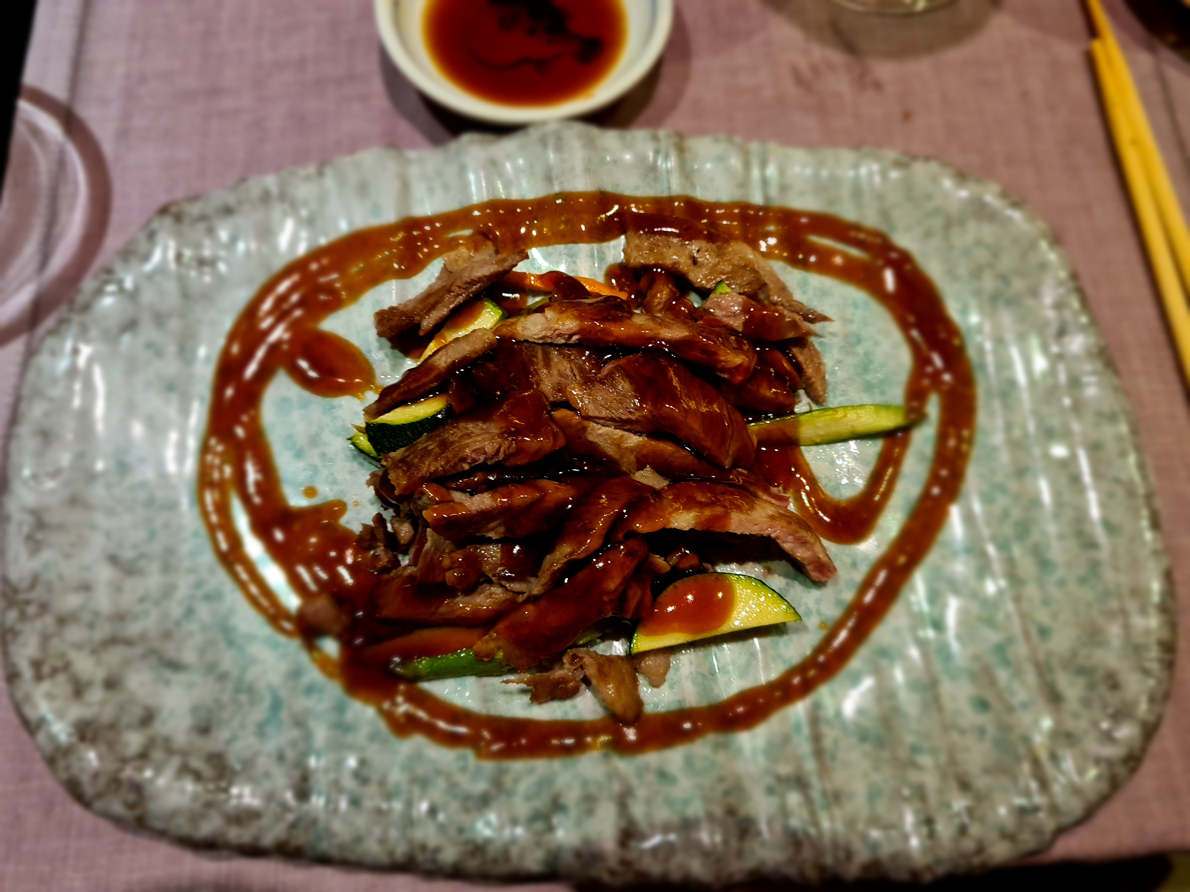 Pluma ibérica teriyaki que viene con los noodles.