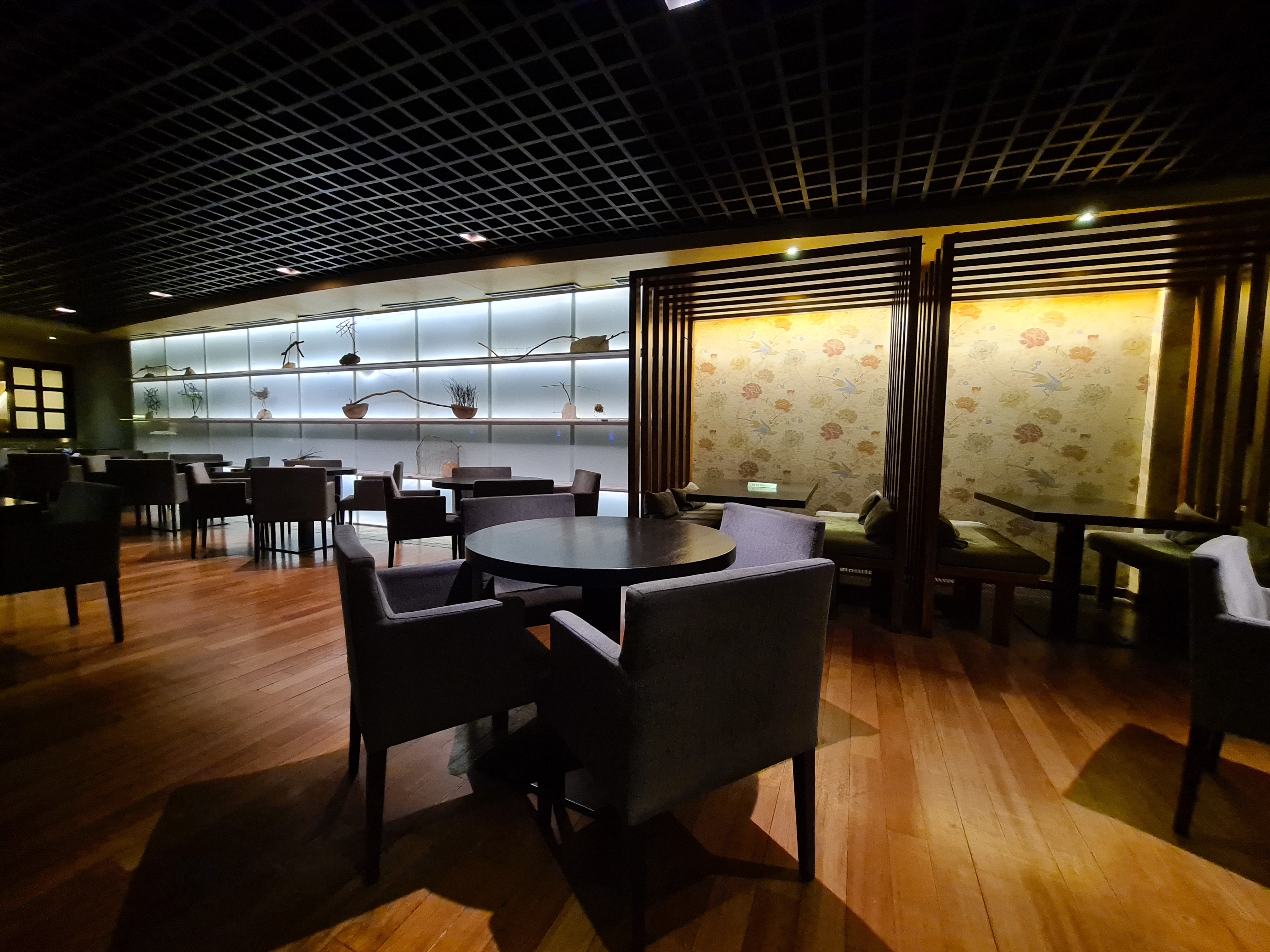 Un lugar muy agradable, en una mesa donde no teníamos a nadie a nuestro alrededor y desde donde veíamos la cocina tapada con una cortina de plástico.