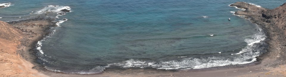 Agradecemos que esté un poco nublado porque nuestra idea es hacer una ruta para después comer unos bocatas en la playa tranquilamente. En el Puertito está el único restaurante bar de la isla. Os lo digo por si queréis comer ¡reservar! Nosotros fuimos a tomar un café después de los bocatas y estaba hasta arriba.