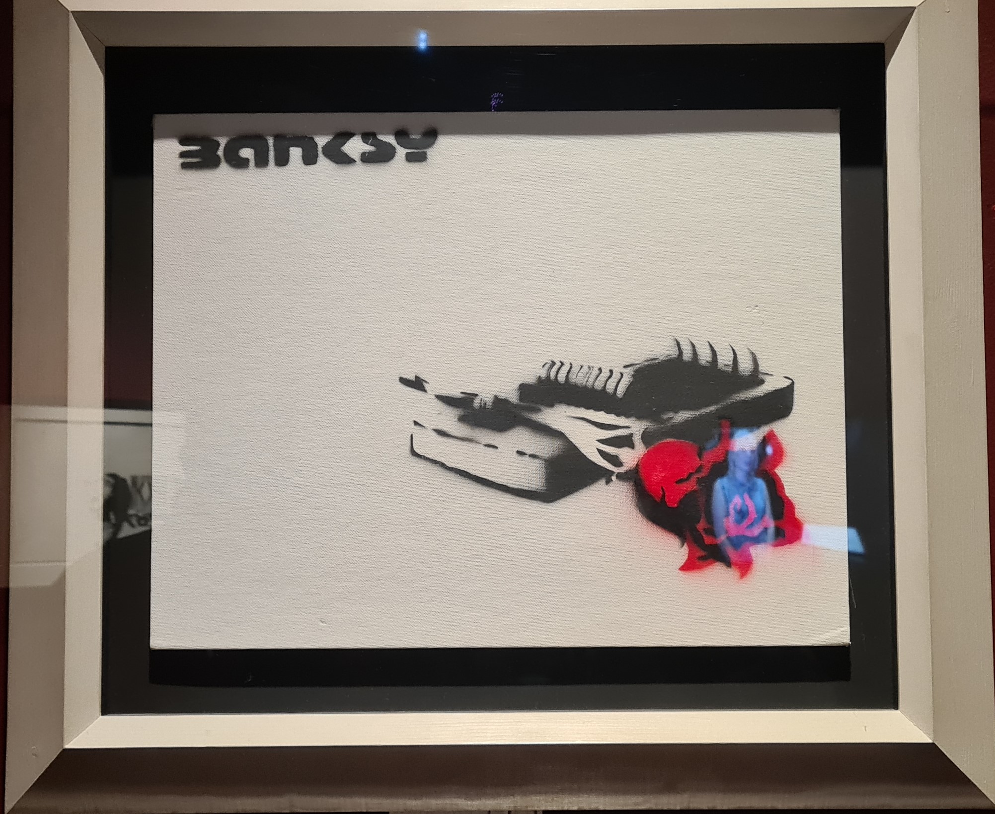 Bansky, además de grafitis en las calles, realizó serigrafías en las que él mismo hacía las planchas. Hay un video muy interesante de cómo es el proceso de la impresión de sus ediciones más famosas.