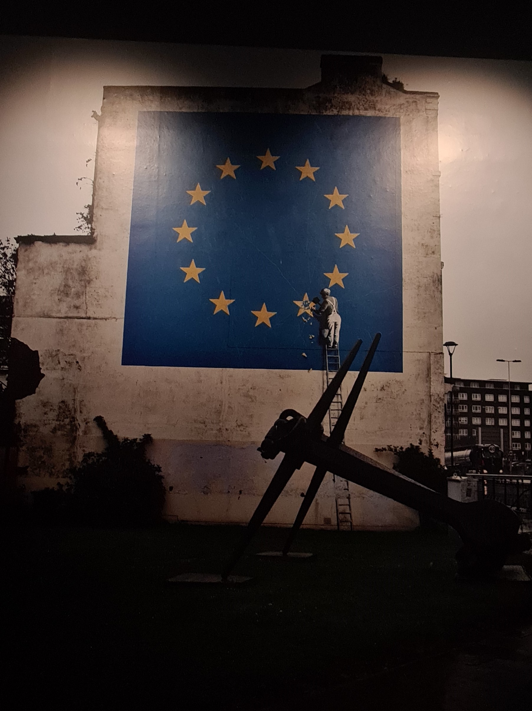 Este grafiti apareció en la ciudad de Dover en 2017. Eligió una pared de una casa de una familia que tenían un gran imperio comercial. La obra está dedicada al largo proceso de la retirada de Gran Bretaña de la Unión Europea. Con el tiempo se descubrió que era obra de Bansky. El edificio se iba a demoler pero el ayuntamiento de Dover al final decidió contratar seguridad para la obra…. Toda una contradicción???