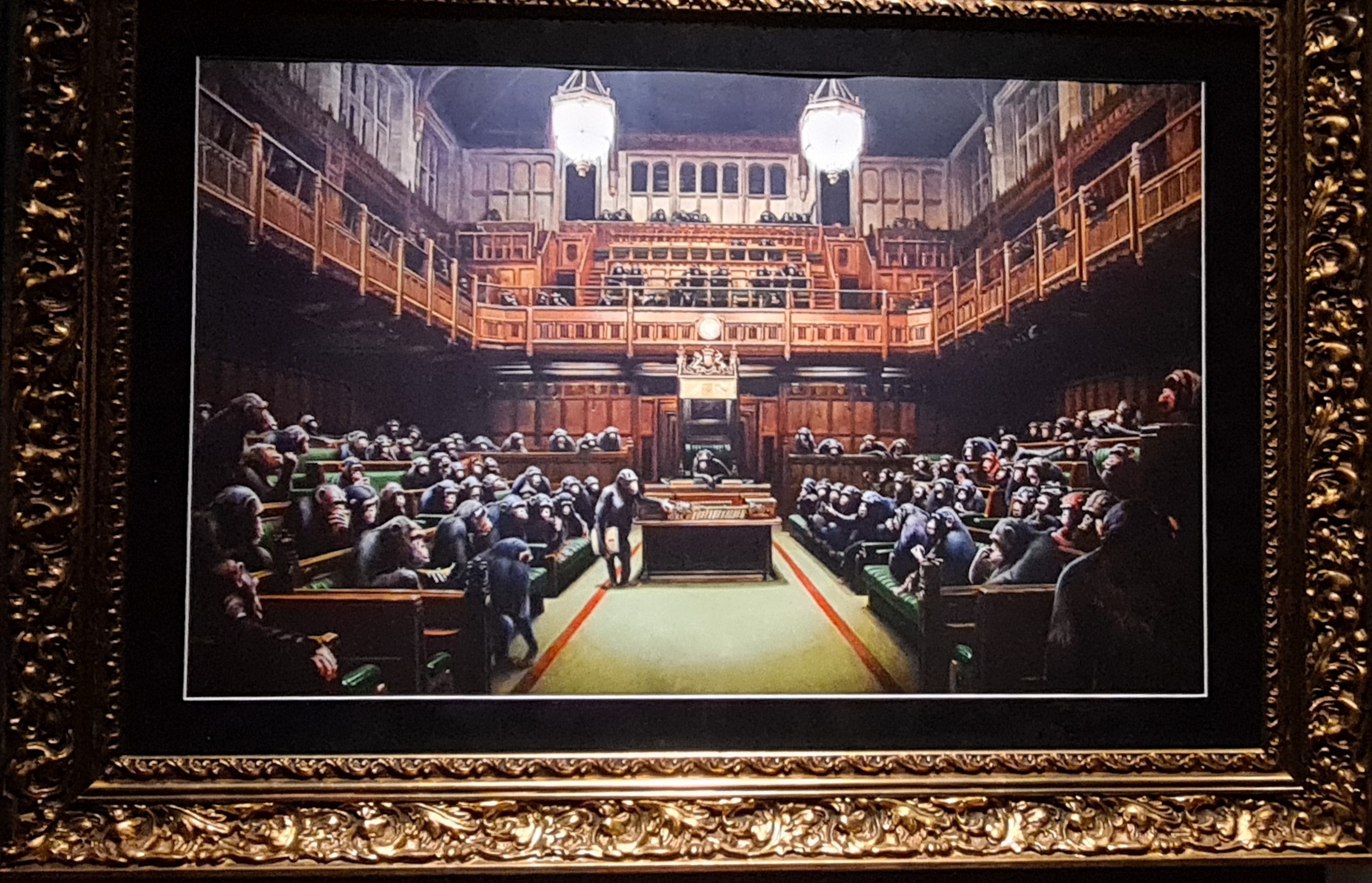 Desde luego esta obra pasa por actual en nuestro país, un grupo de monos controlando el parlamento…. Total…. Se expuso por primera vez en el Museo de Bristol en 2009. 12 años después y así vamos…