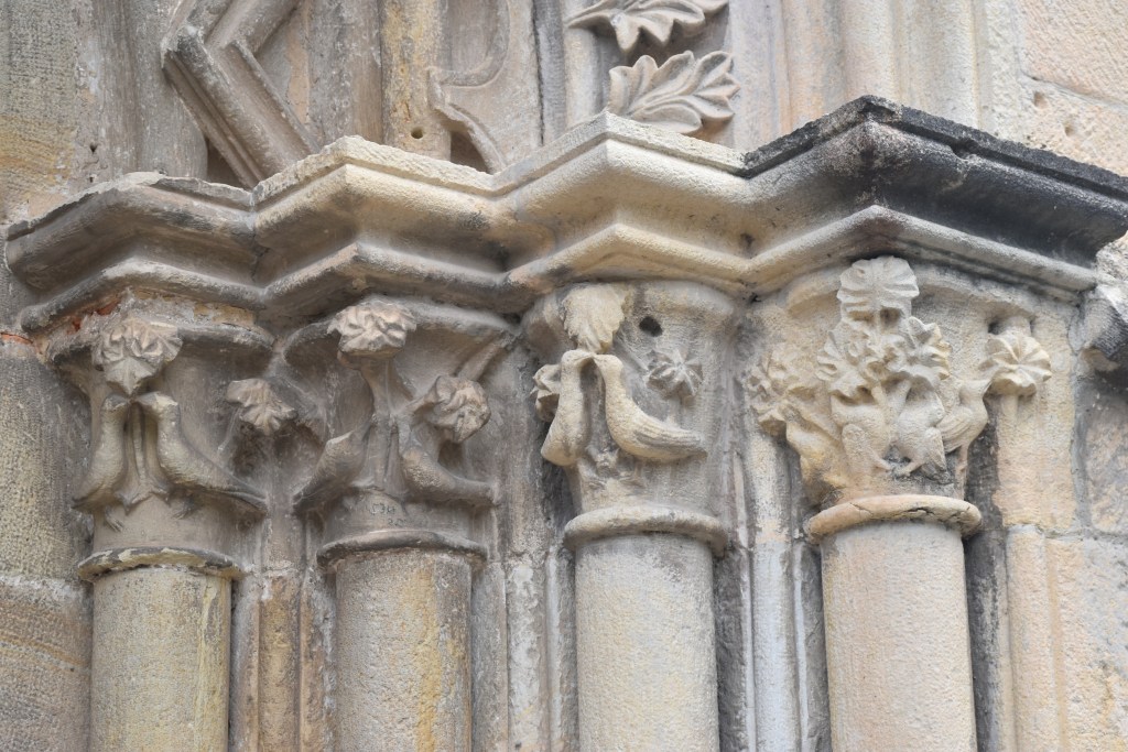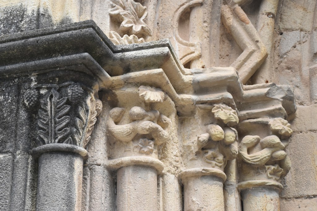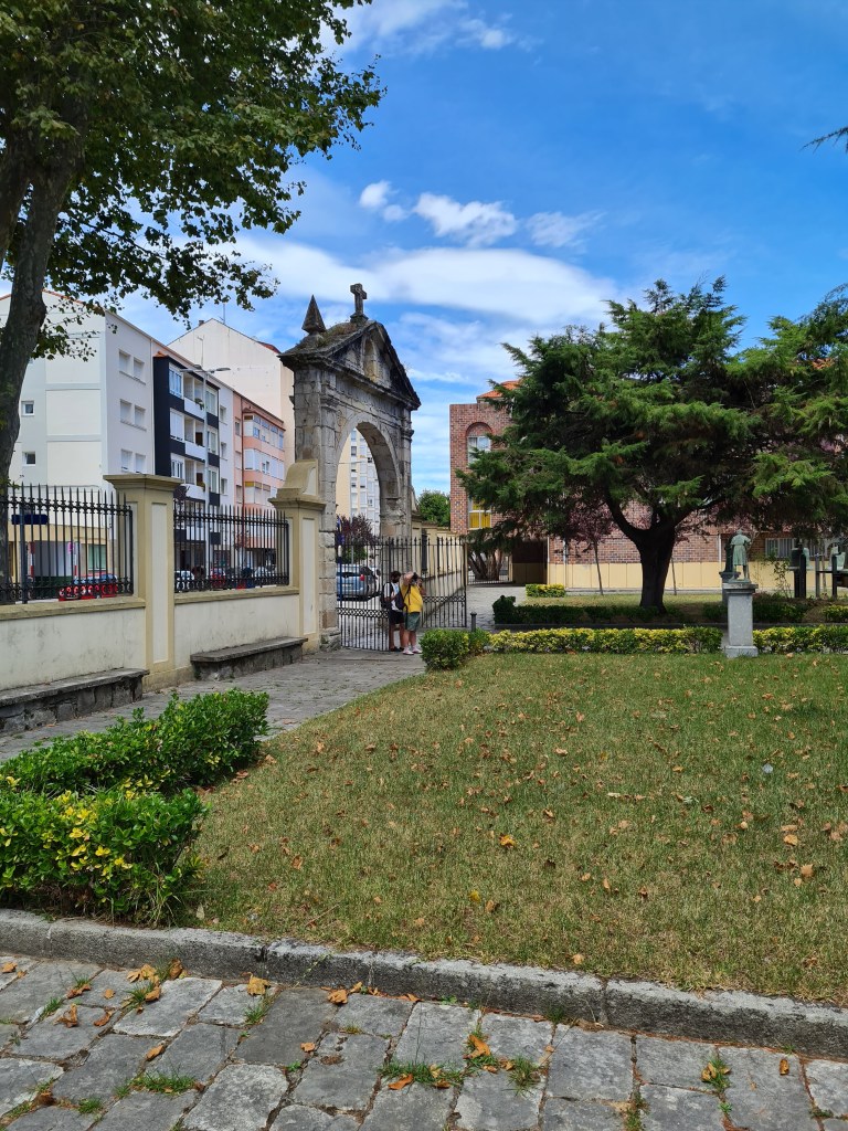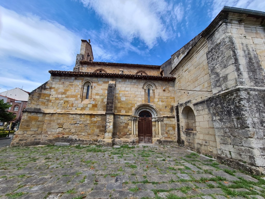 Caminamos hacía la Iglesia de la Virgen del Puerto, muy importante en Santoña. Aunque solo podemos ver el exterior, está cerrada. Nos tenemos que conformar… con sus dos portadas, una de arco apuntado y otra con arco de medio punto. Arquivoltas en las dos puertas que terminan en columnas con relieves decorados, que nos hace comprender que seguro en su interior guarda bonitas obras de arte.