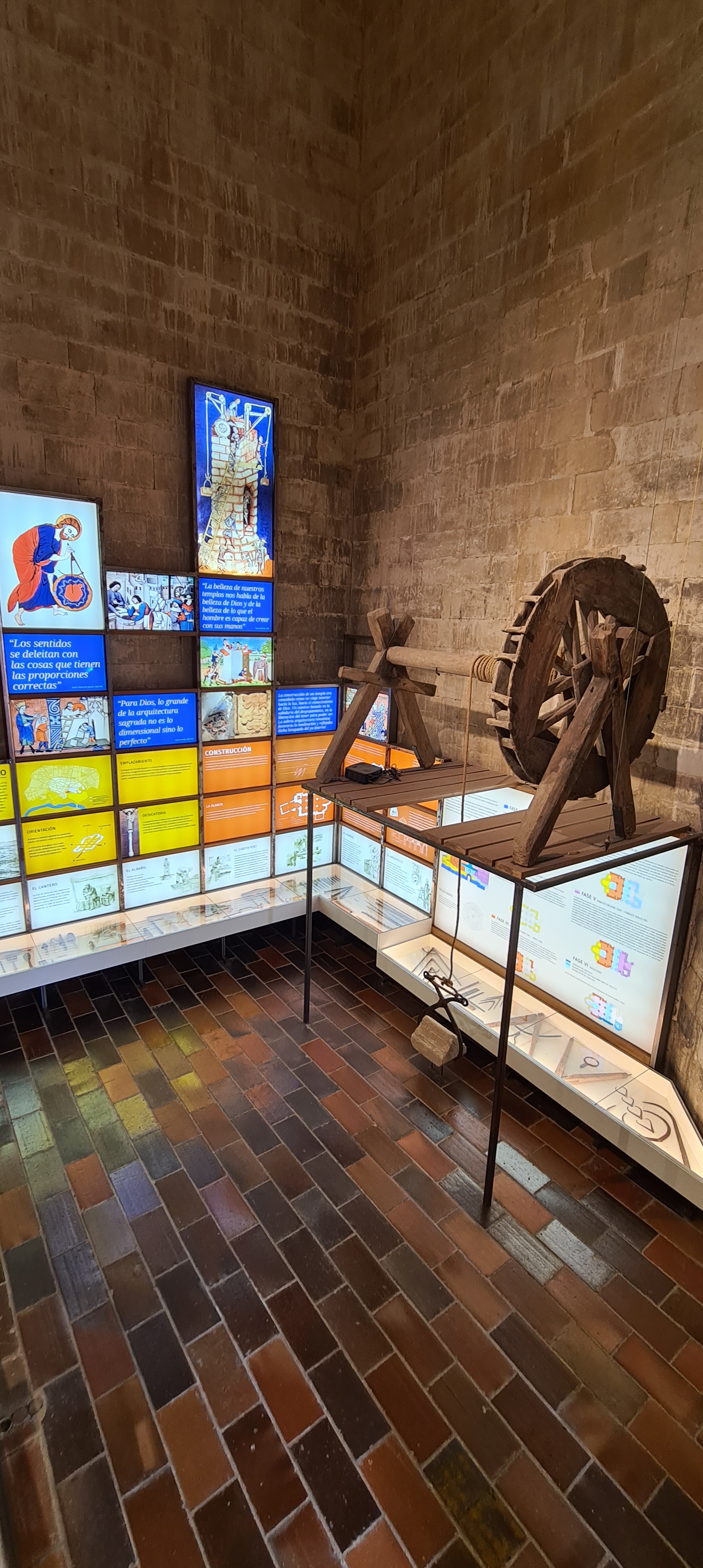 En la primera sala hay una exposición sobre la construcción de la Colegiata. Podemos ver una grúa como las que se utilizaron para su construcción.