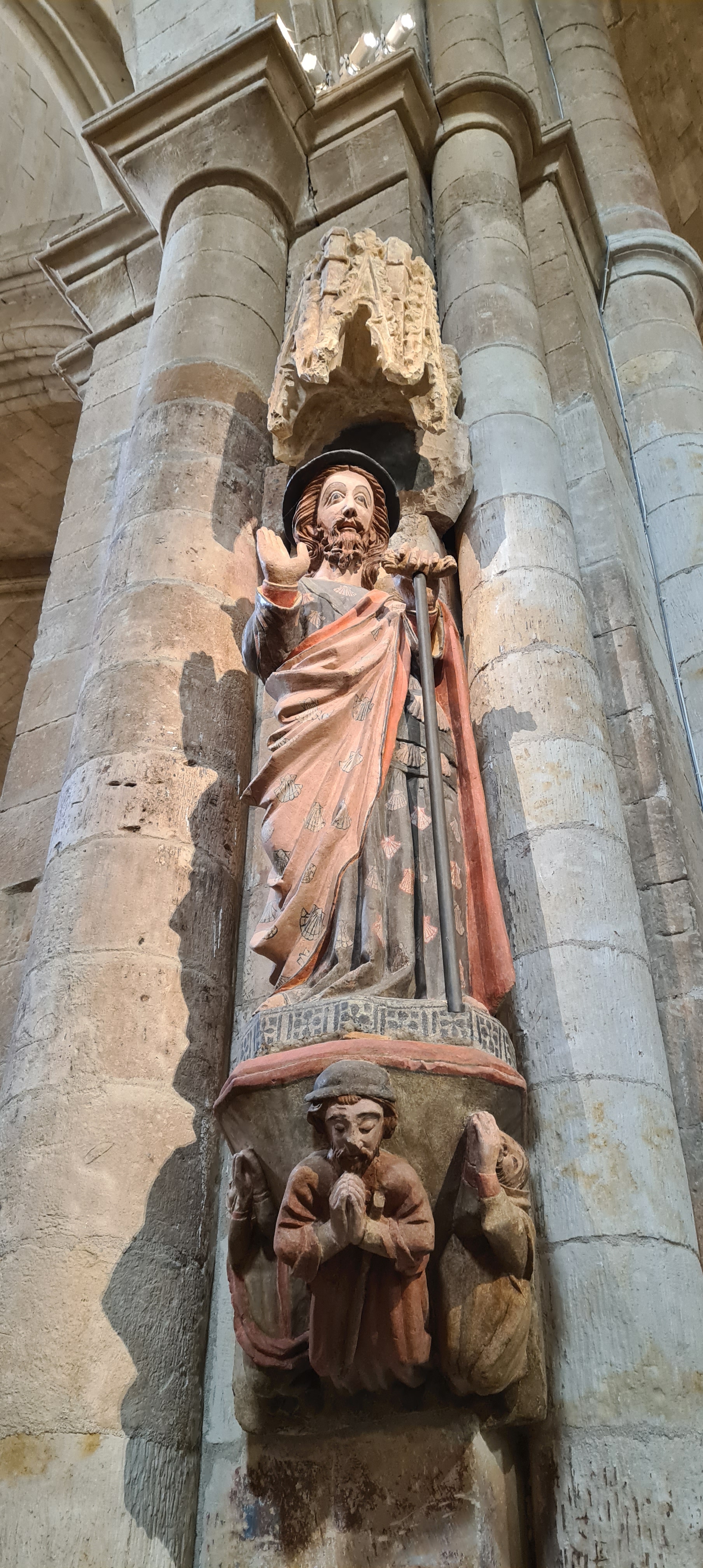 En las pilastras de las naves hay 4 figuras también policromadas.