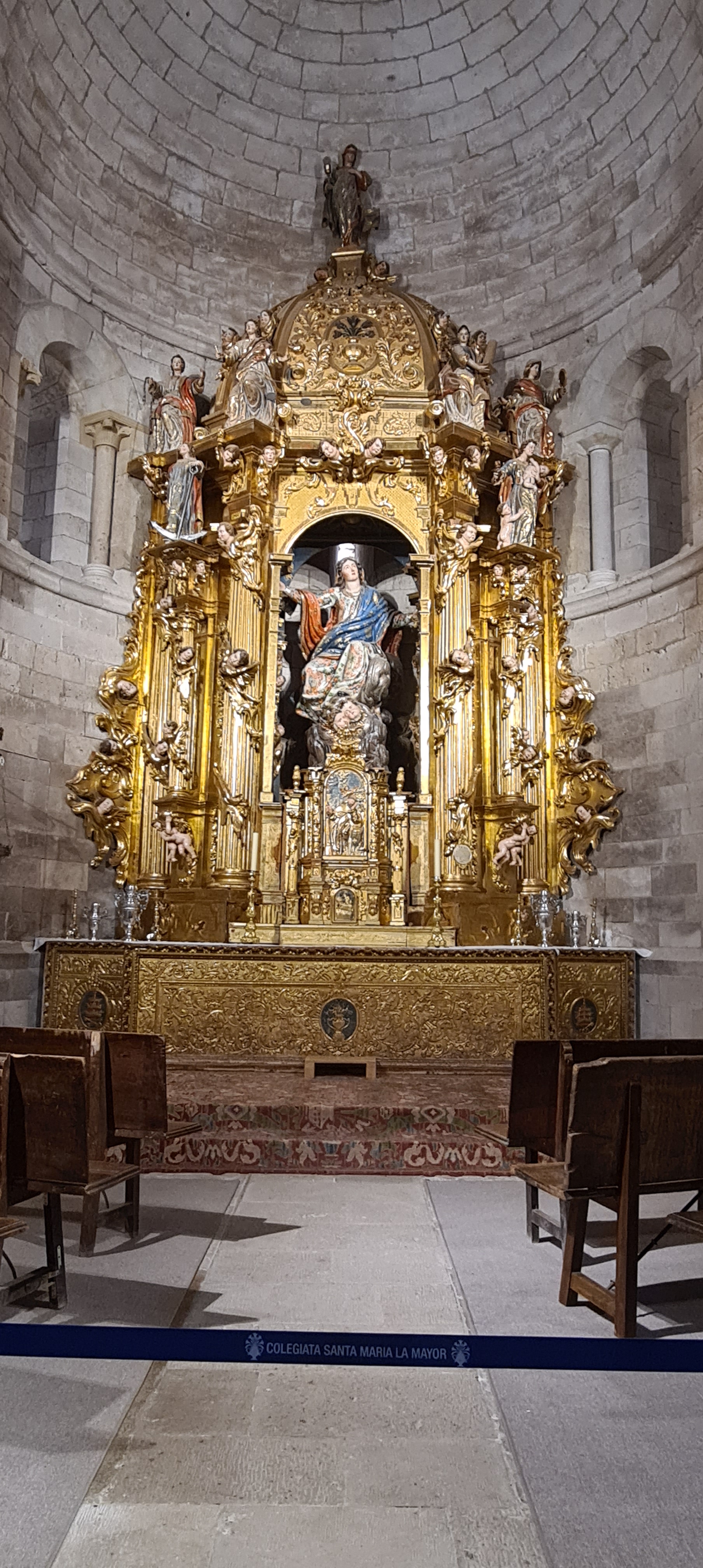 La Capilla Mayor tiene unos sepulcros en los lados del siglo XVI. La talla de la Asunción llegó a la Colegiata desde la catedral de Salamanca.