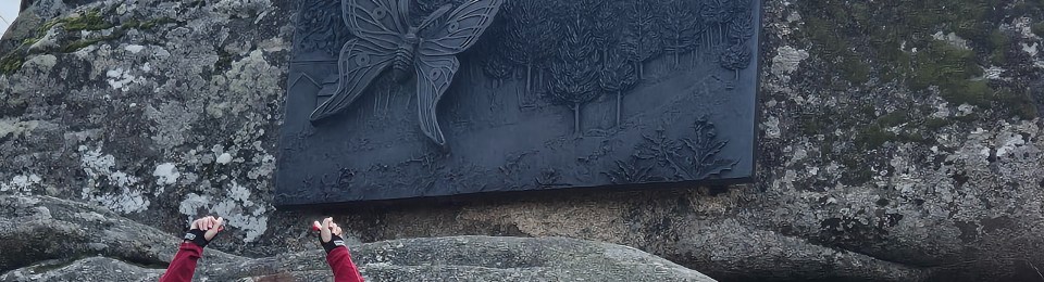 Después de pasar una gran pradera llena de vacas, las famosas vacas de la sierra de Guadarrama, llegamos al monumento a la mariposa Graellsia isabelae. Fue descubierta en 1849 por Mariano de la Paz Graells, uno de los directores que ha tenido el Jardín Botánico de Madrid. La mariposa, que realmente es una polilla, no tenemos (casi) ninguna posibilidad de verla, ya que es nocturna. Nos conformamos con ver una foto en internet y el precioso monumento de bronce que hay para conmemorar que allí fue el primer lugar donde se vió esa especie de mariposa. Es realmente bonito.