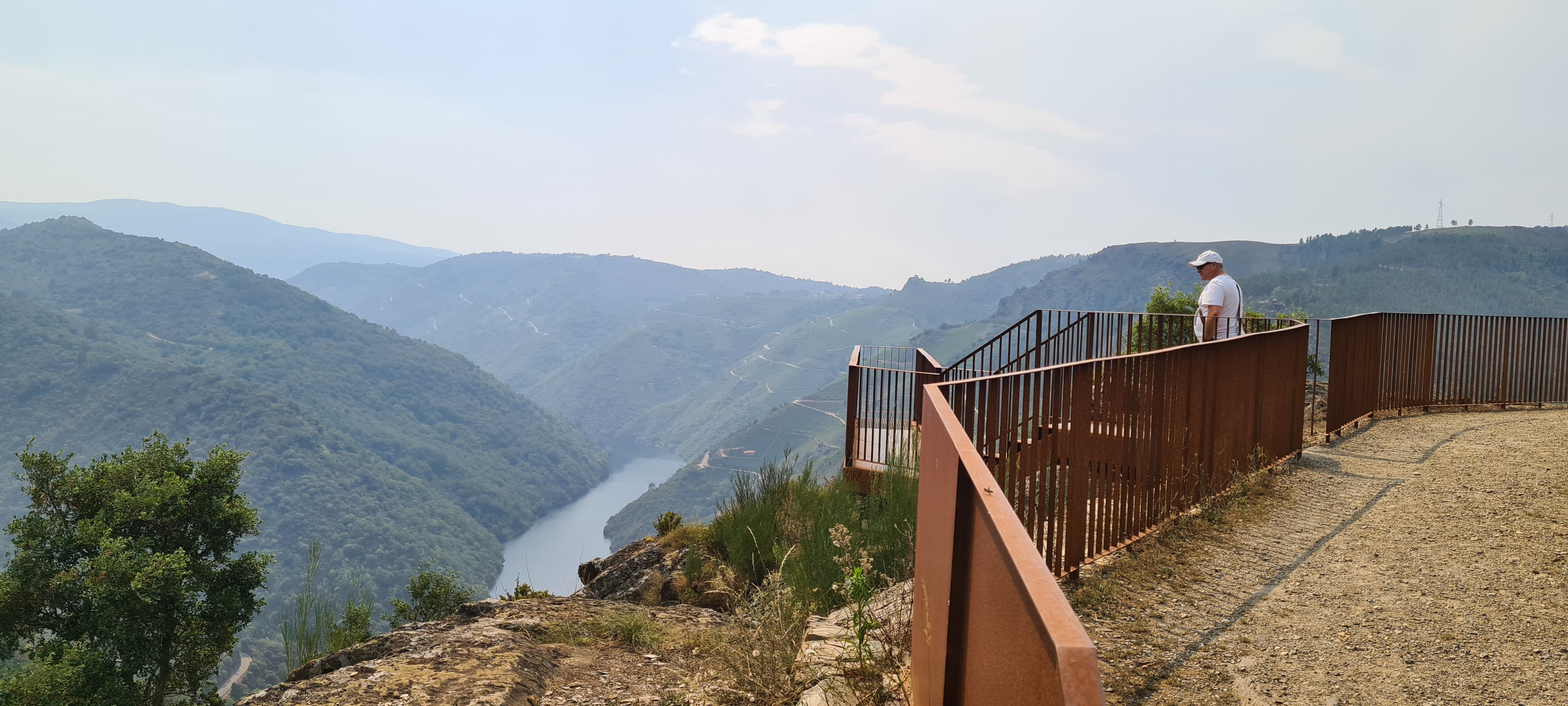 Mirador De As Penas De Matacás. El segundo mirador del día y creo que más impresionante, hay que andar un poco desde el aparcamiento, es una pequeña senda, mejor con deportivas. Desde este también vemos viñedos de Amandi y el embarcadero Ponte do Sil. Estamos en Lugo y justo enfrente Orense. El mirador tiene una pequeña plataforma para que sientas un poco el vacío y el vértigo bajo tus pies. Rodeado de unas grandes piedras. Forma parte también de una ruta de senderismo PR-G 237.