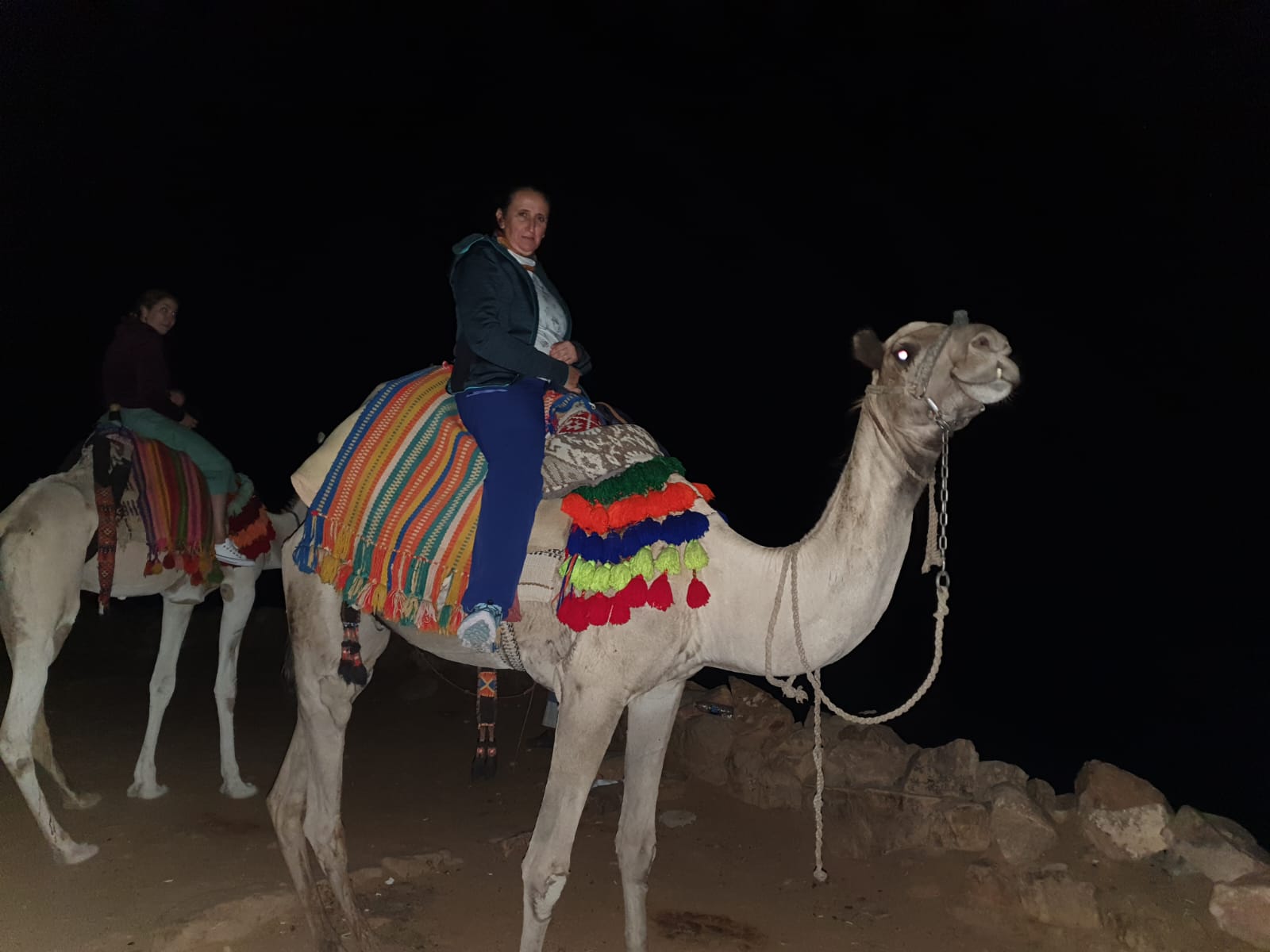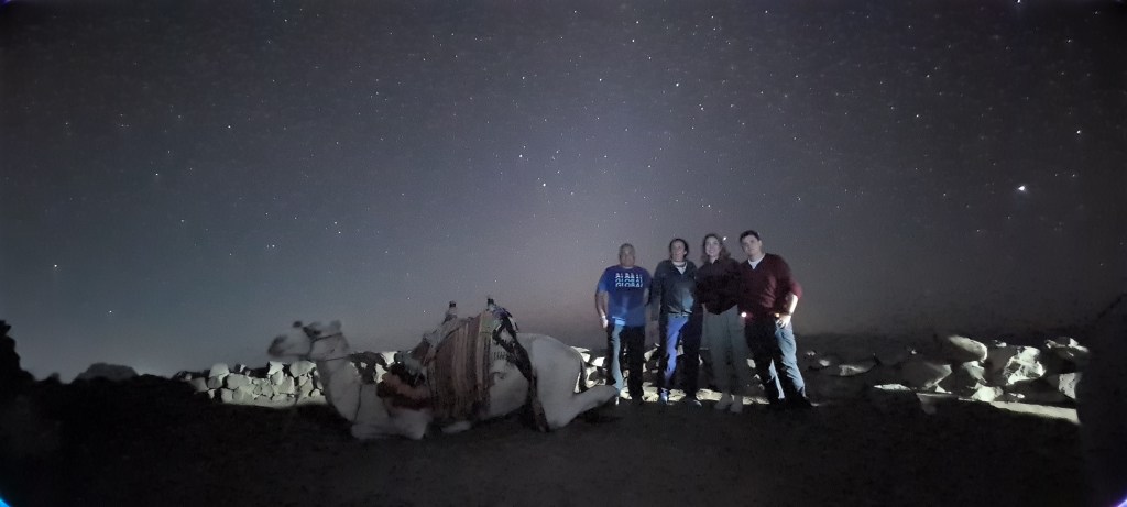 ¡Madre mía! es toda una experiencia. Estoy como flotando en un sueño. Vamos en fila en tres camellos (uno va sin pasajero por si alguien lo necesita), no vemos la montaña, solo el camino por donde vamos lleno de piedras, pero el cielo es maravilloso, me siento como un Rey Mago, es una sensación muy extraña pero increíblemente agradable… mágico. En camello solo se puede subir un poco más de la mitad del camino, luego si o si, tengo que subir. El paseo en camello me ha hecho reponer fuerzas…