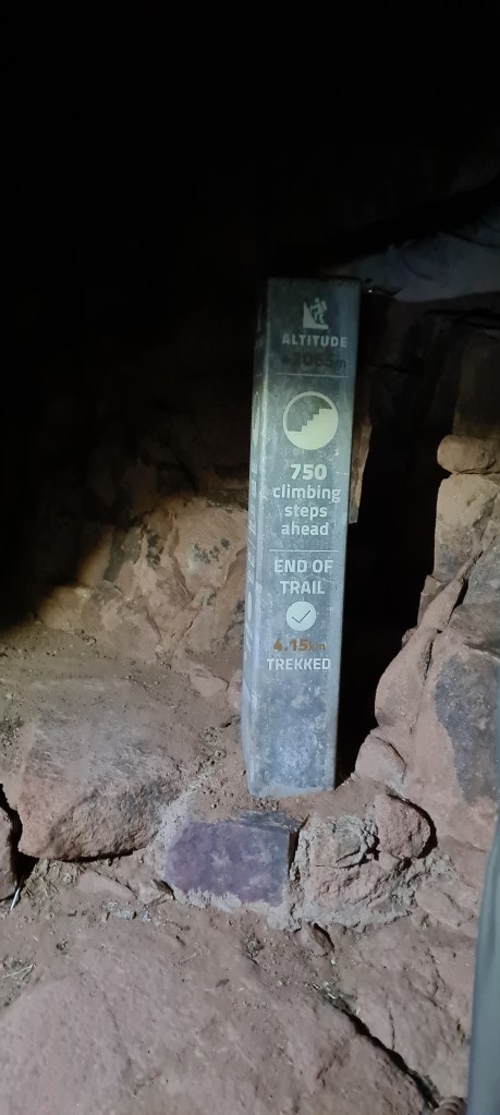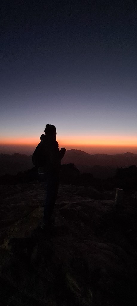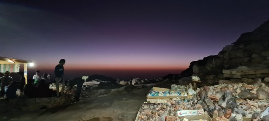 Llegamos al tramo en el que empiezan los 750 escalones y empiezo a subir, poco a poco, poco a poco. En la mitad del camino hay un segundo café, en el que puedes comprar souvenir de recuerdos: piedras de la montaña sobre todo y tomarnos un té de menta para afrontar el reto final y llegar a la cima para ver amanecer. Posiblemente el mejor té de mi vida… (ya hay otro té en los mejores de mi vida y es en Feynan en Jordania).