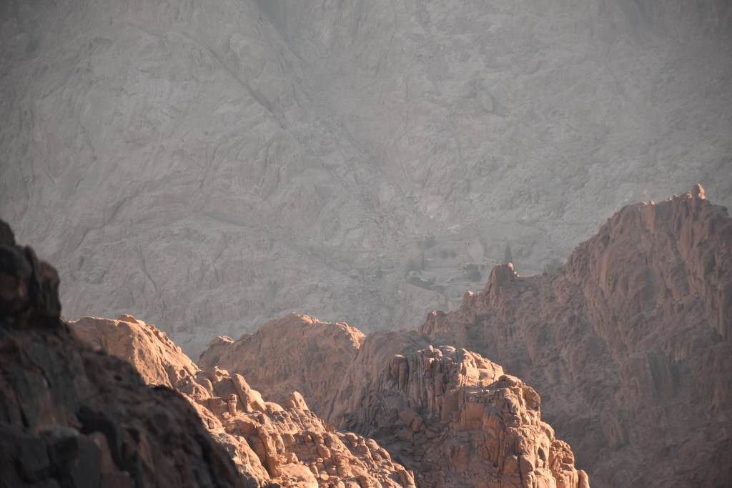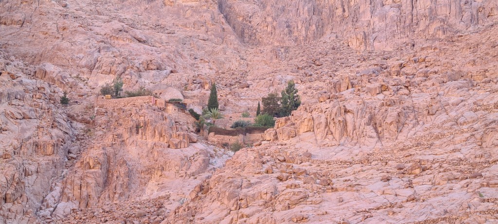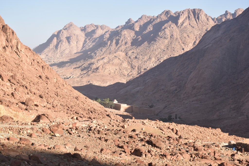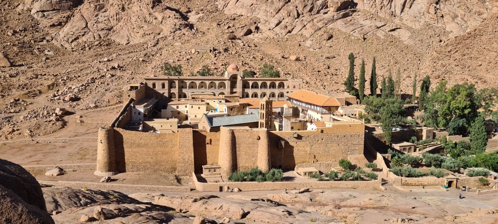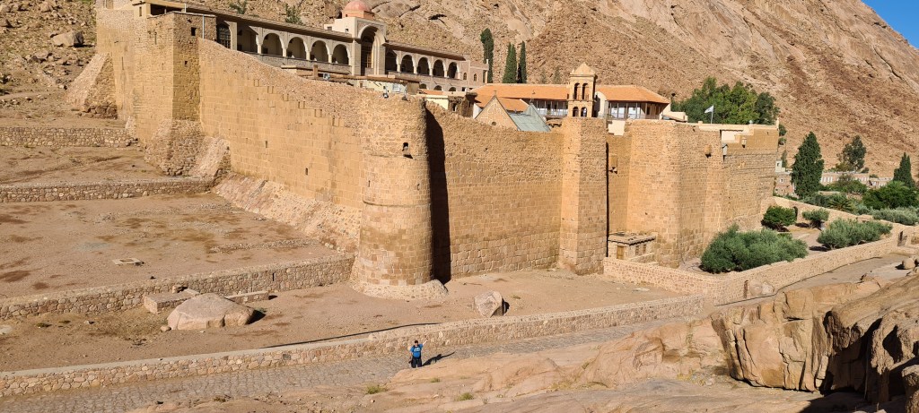 En un momento aparece ante nuestros ojos en la distancia, el Monasterio de Santa Catalina, puede que sea el monasterio mas antiguo del mundo activo sin interrupción.