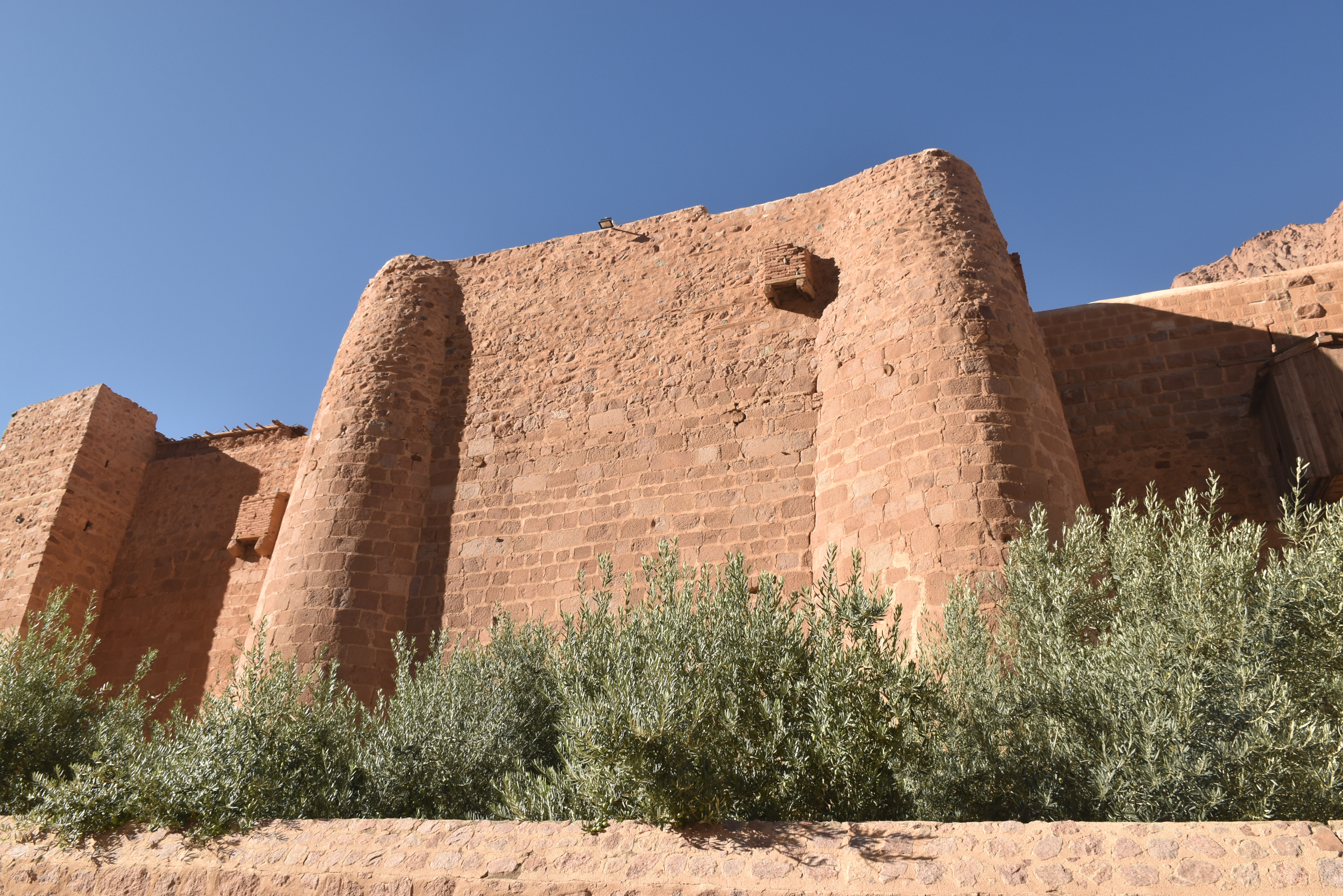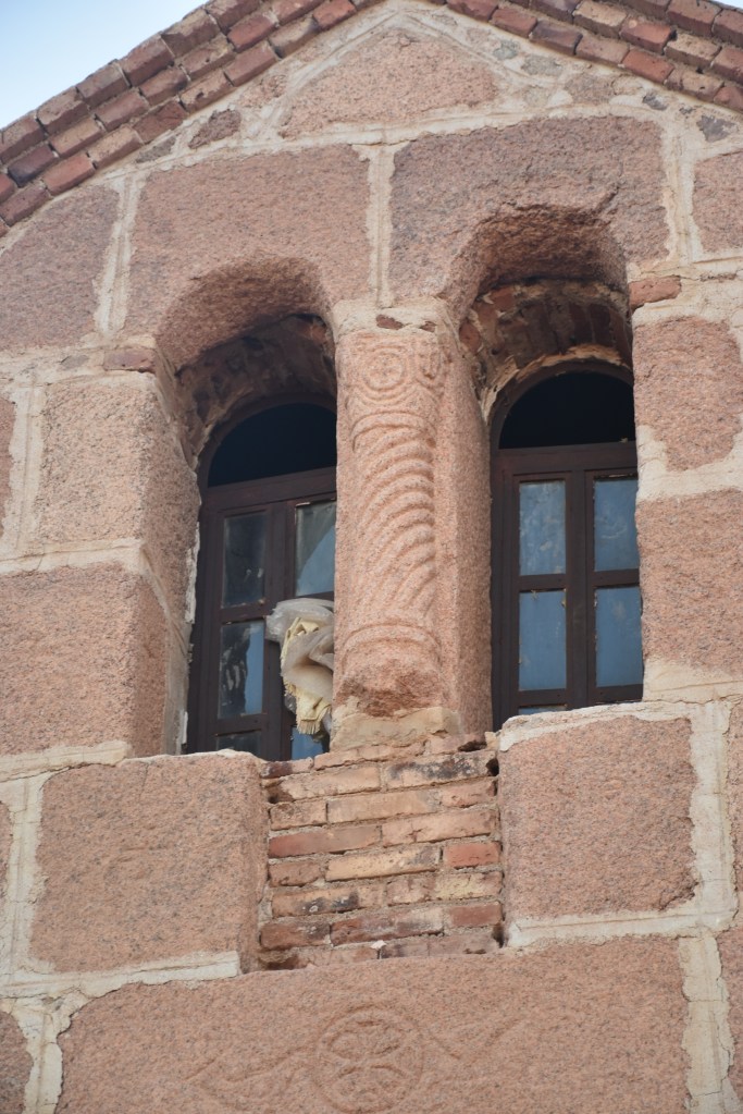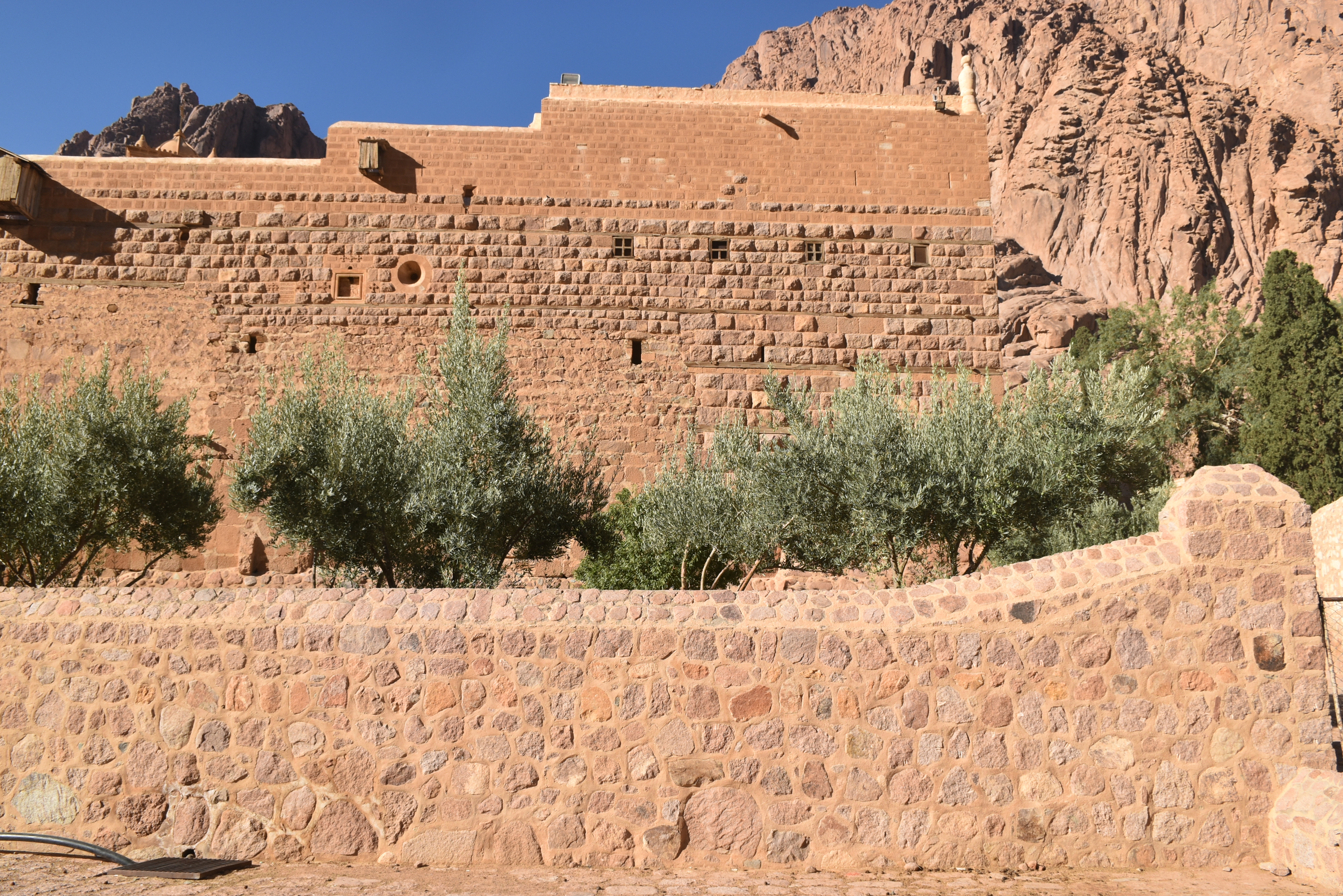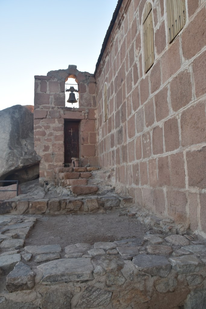 Está declarado Patrimonio de la Humanidad por la UNESCO, se supone que está en el lugar donde Dios se apareció a Moisés por primera vez en forma de zarza ardiendo. Su interior, que no pudimos ver porque el día que subimos al monte el Monasterio cierra al publico conserva una de las bibliotecas más antiguas del mundo con manuscritos anteriores al siglo X. También conserva una colección de iconografía bizantina con piezas que van desde el siglo VI. No pudimos ver tampoco la iglesia de la Transfiguración, dedicada a Moisés y a Elías, profetas que hablaron en este lugar con Dios. Pero si pudimos disfrutar del exterior pegados a sus muros.