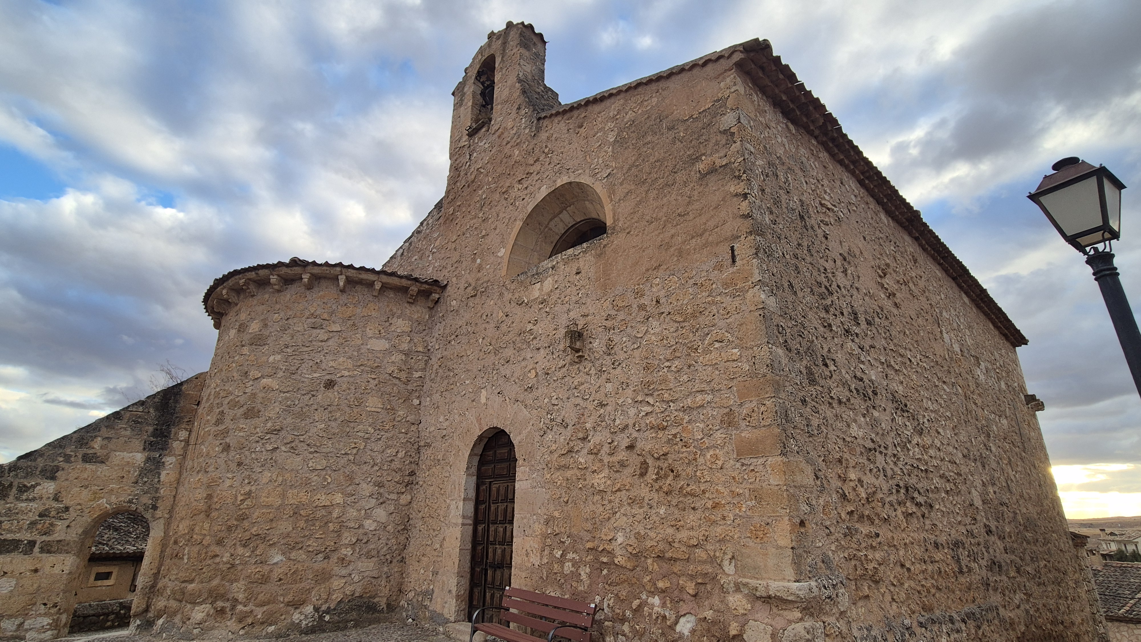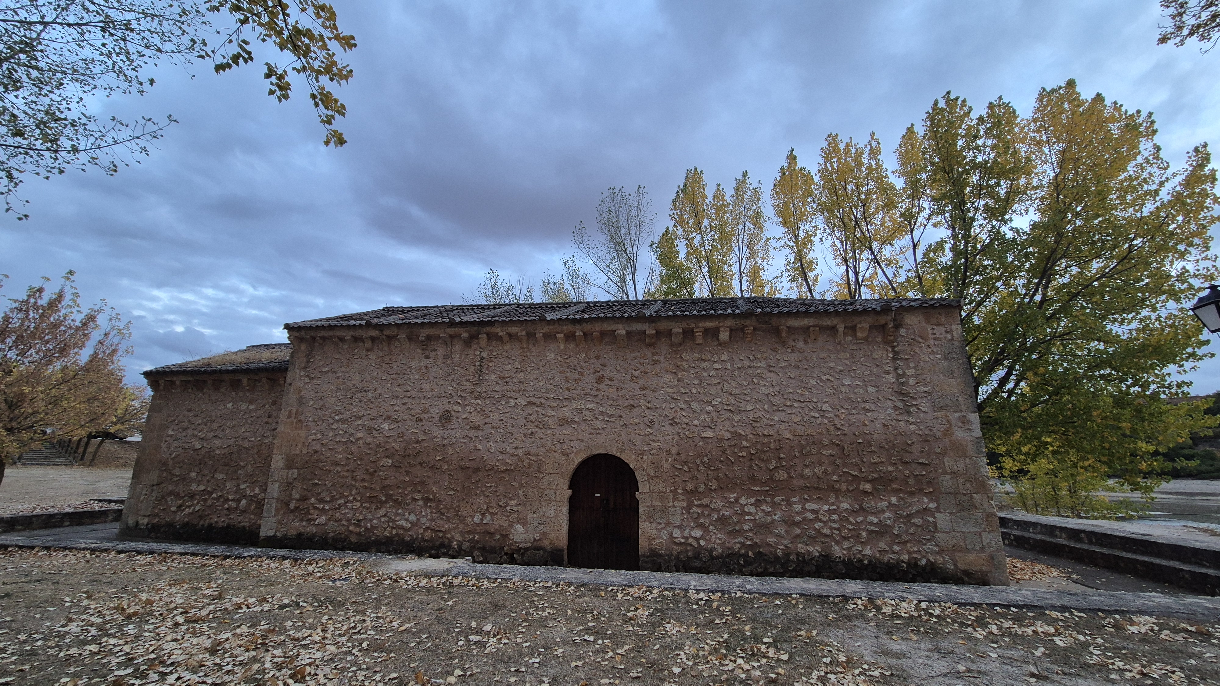 La ermita es pequeña y sencilla, realizada en mampostería y en algunas zonas de sillería de principios del siglo XII. Se cree que fue la Orden del Temple quien la construyó. Es una pena que no podamos ver el interior, porque tenía unas pinturas románicas consideradas una de las más importantes de España. (Ahora se supone que hay unas replicas), las originales fueron trasladadas al Museo del Prado, cuando se construyó el pantano de Linares en 1947. (Tendré que volver al Prado para verlas y contaros, aunque el el Prado no se puede hacer fotos😖, o volver a Maderuelo para ver las replicas).