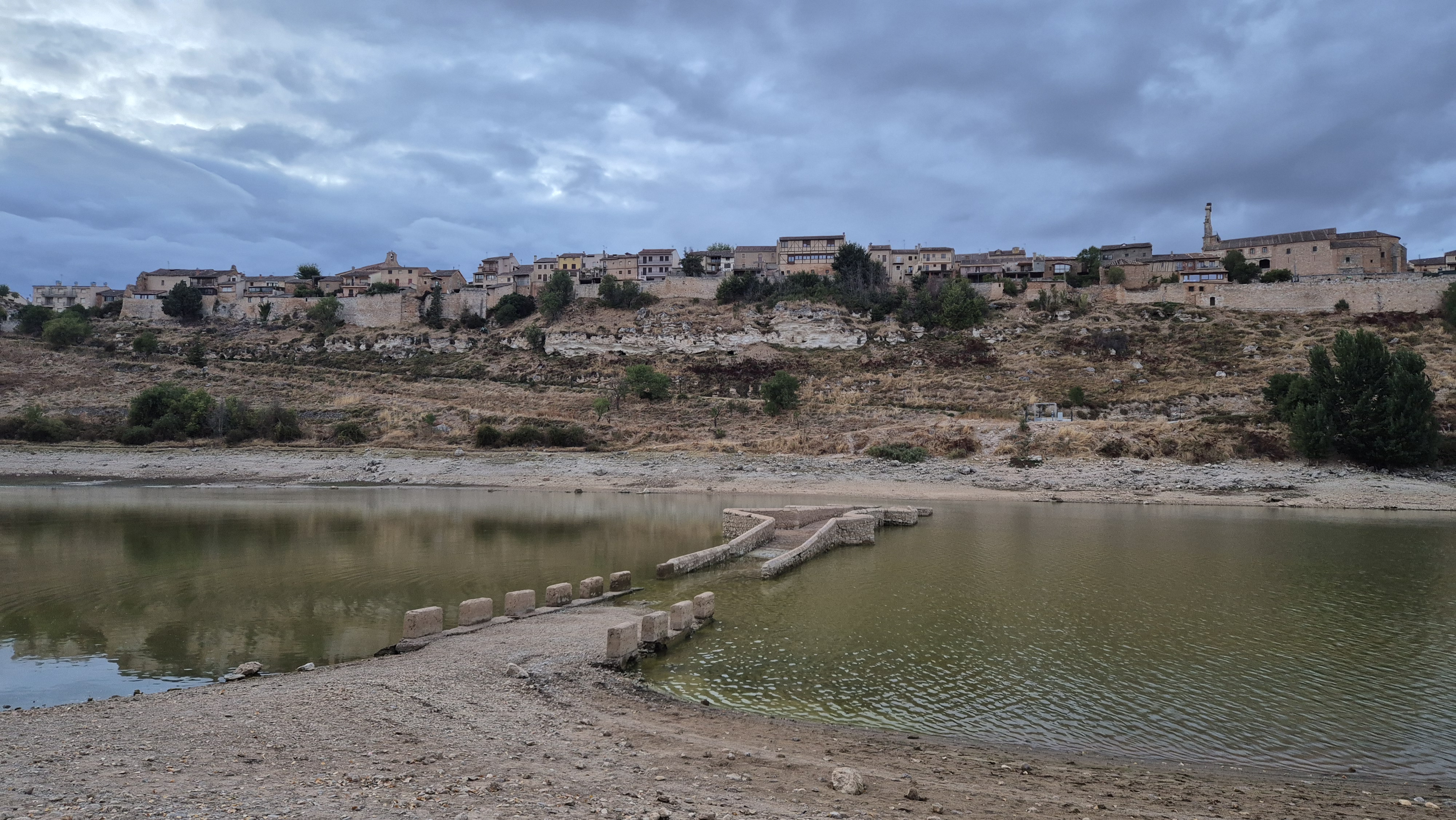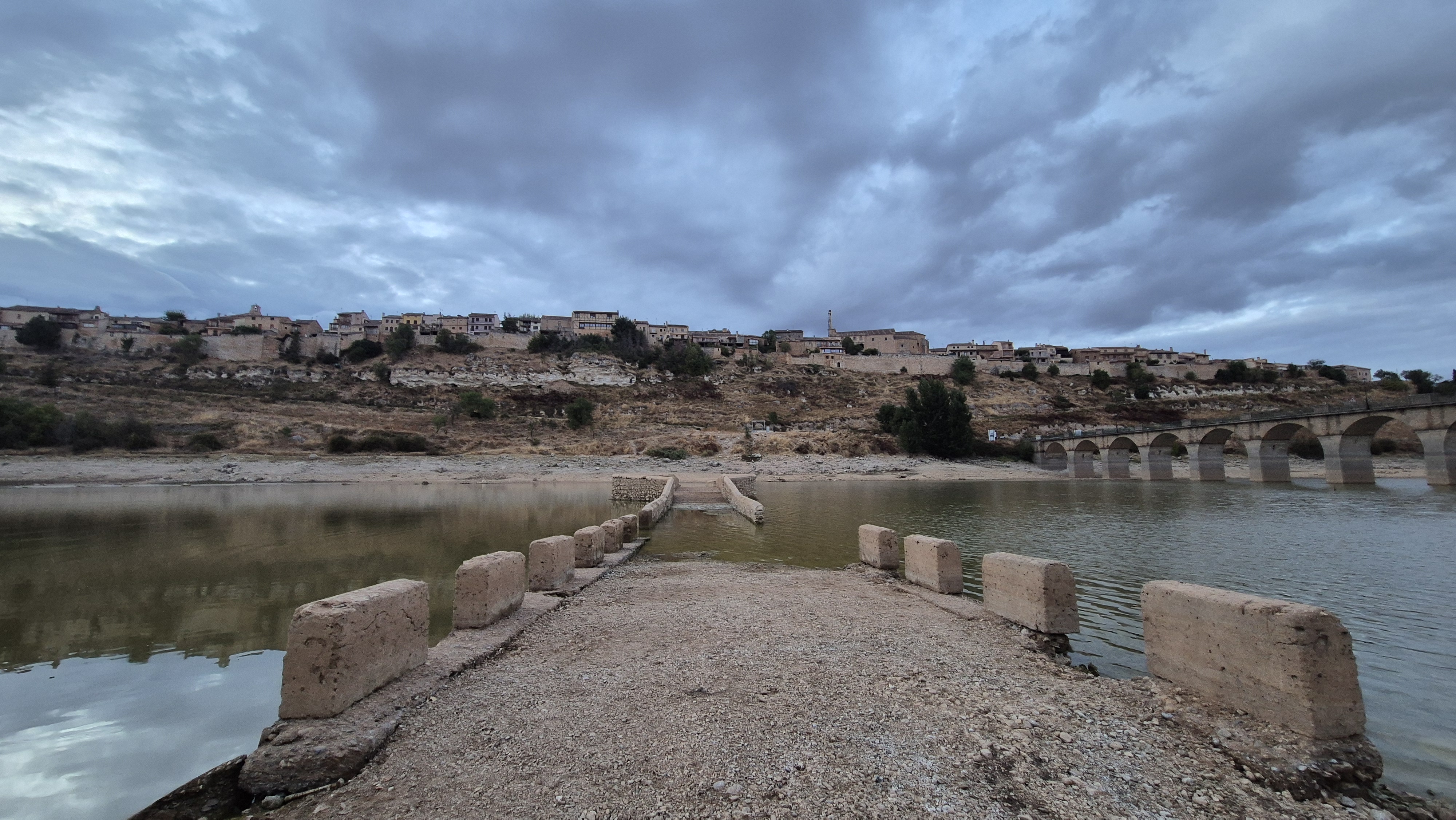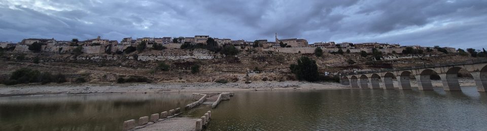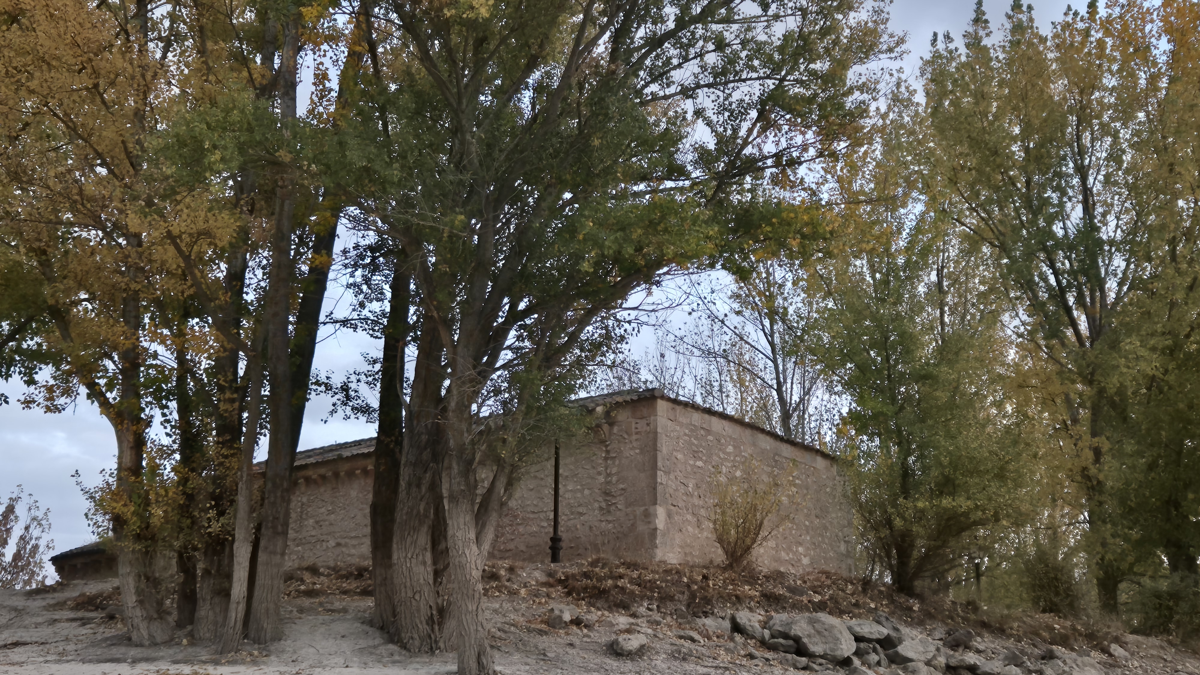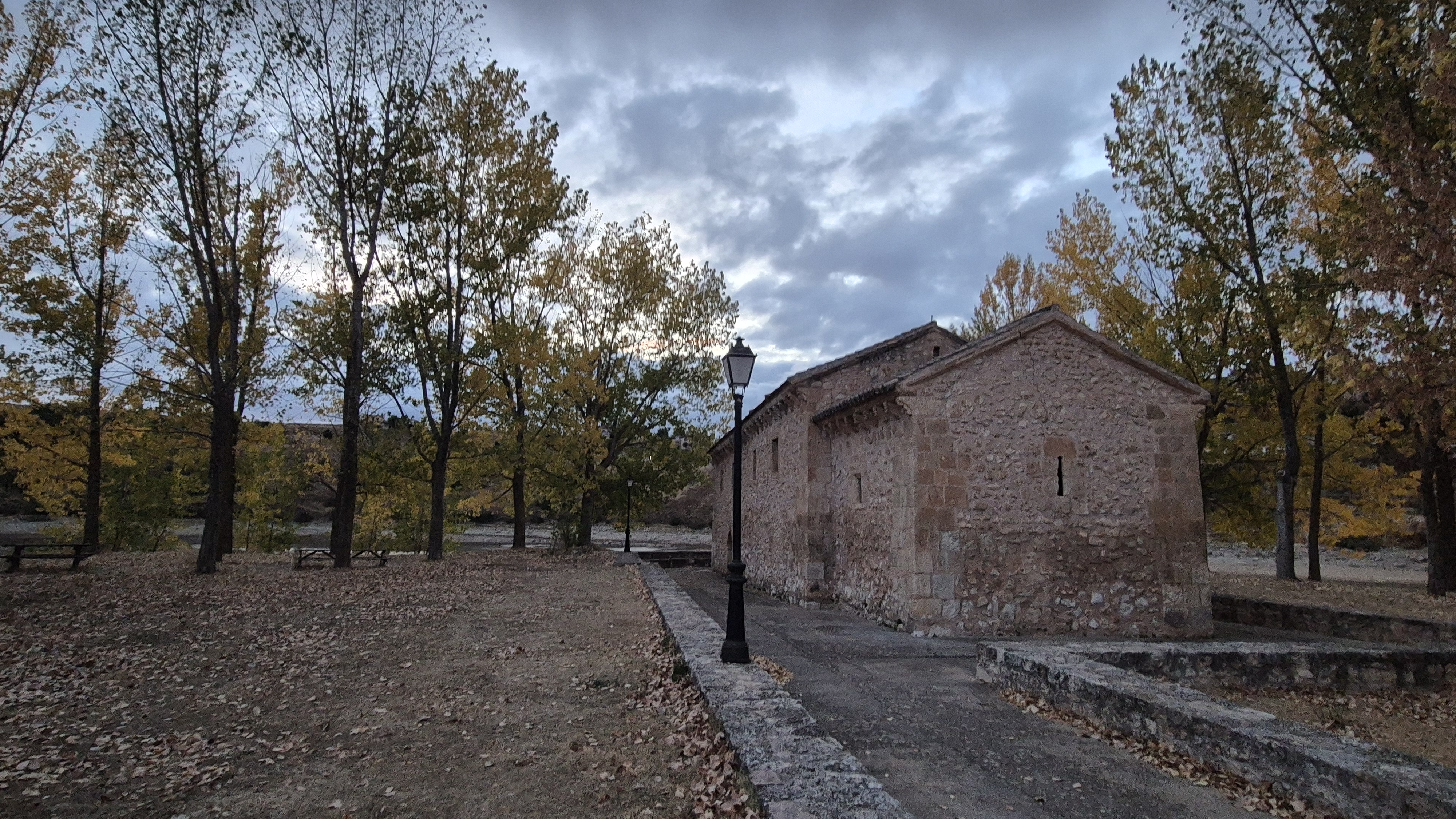 Antes que se hiciera de noche bajamos al Embalse de Linares, por donde pasa el río Riaza y está la Ermita de la Vera Cruz. Aparcamos en un gran aparcamiento (tiene pinta que se llena cuando hace buen tiempo). La vista desde este lugar es preciosa, la luz empieza a perder intensidad y el color cambia. Hay un bar donde tomamos un café antes de pasear por el lugar.