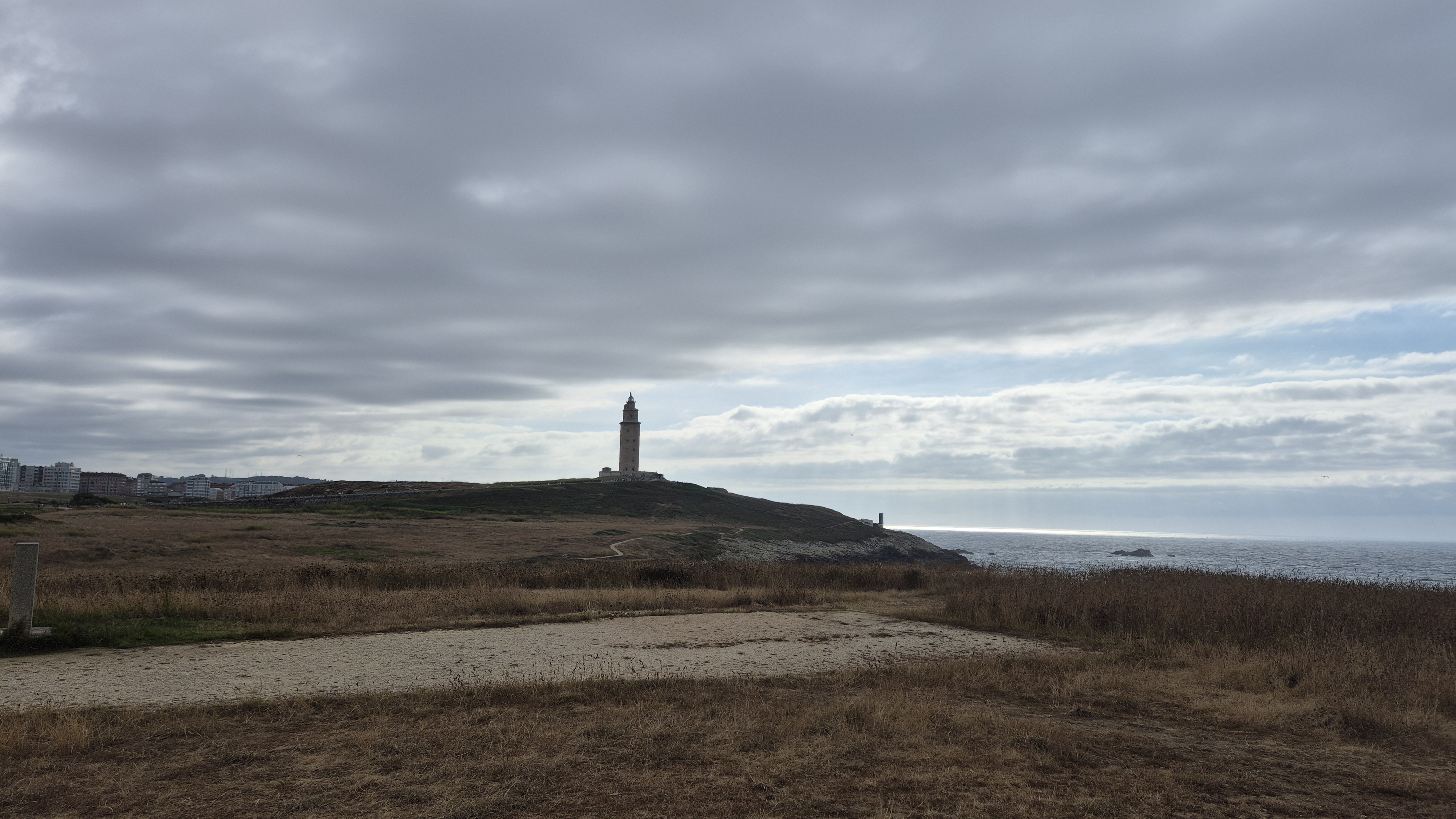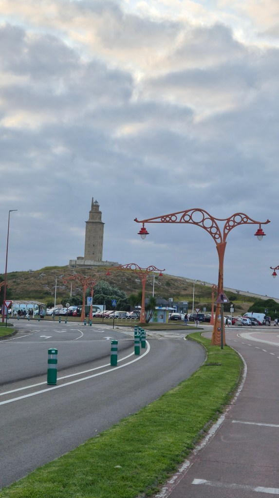 Cuando bajamos apenas quedan personas alrededor del faro-torre, da un poco de pena alejarse de allí. Dejamos atrás la torre y vamos a coger el autobús, esta vez el número 5, que nos deja cerca de la Plaza del Humor (estuvimos por la mañana) para ir a cenar. Es nuestra última noche en la ciudad, mañana saldremos a recorrer La Costa da Morte, pero antes nos despediremos de A Coruña en el Monte San Pedro.