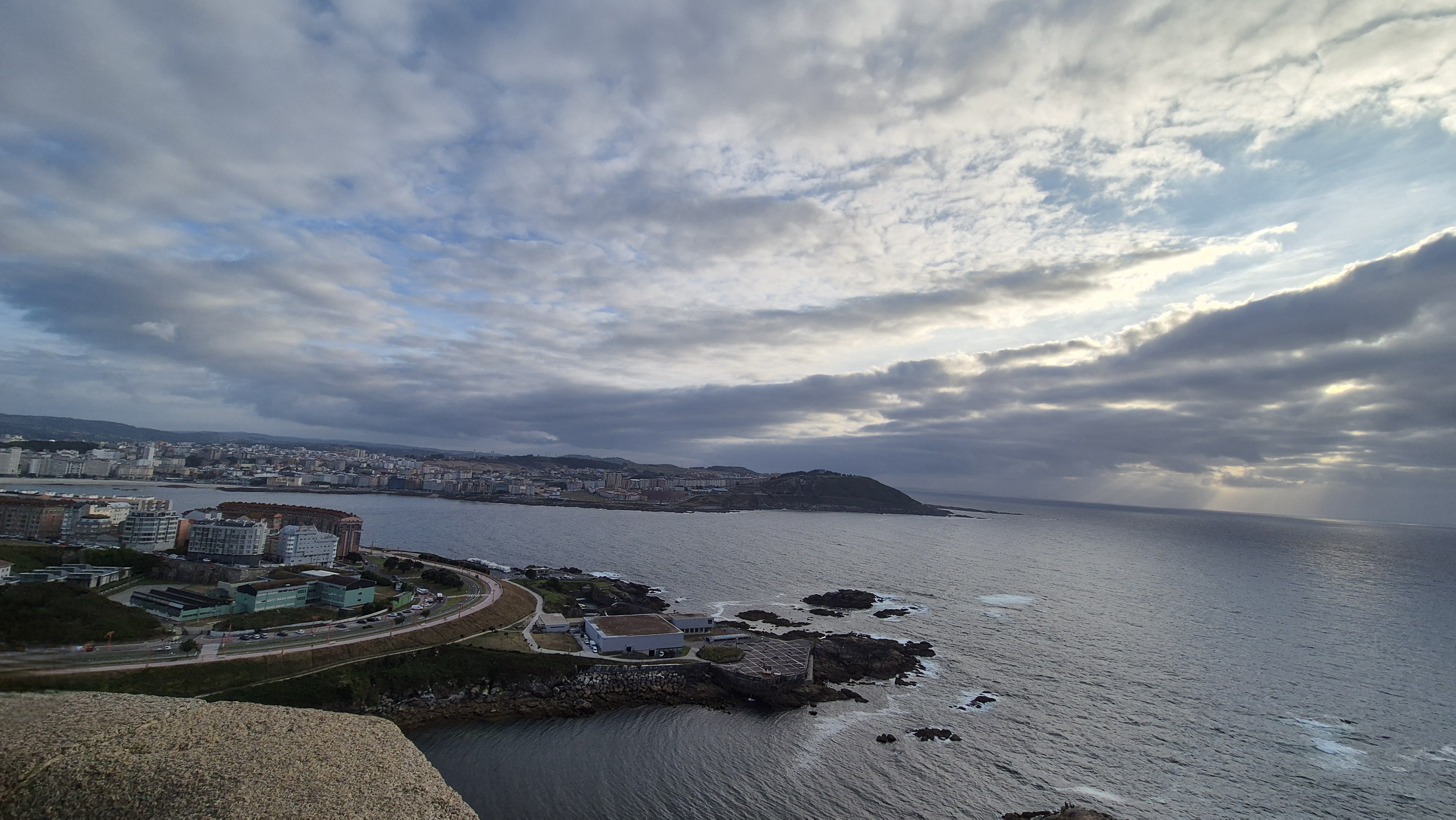Vamos haciendo varias paradas hasta llegar arriba, 199 escalones y luego 35 más hasta el mirador. La vista imperdible, el mar, el cielo, Coruña, el color que adelanta la caída del sol…