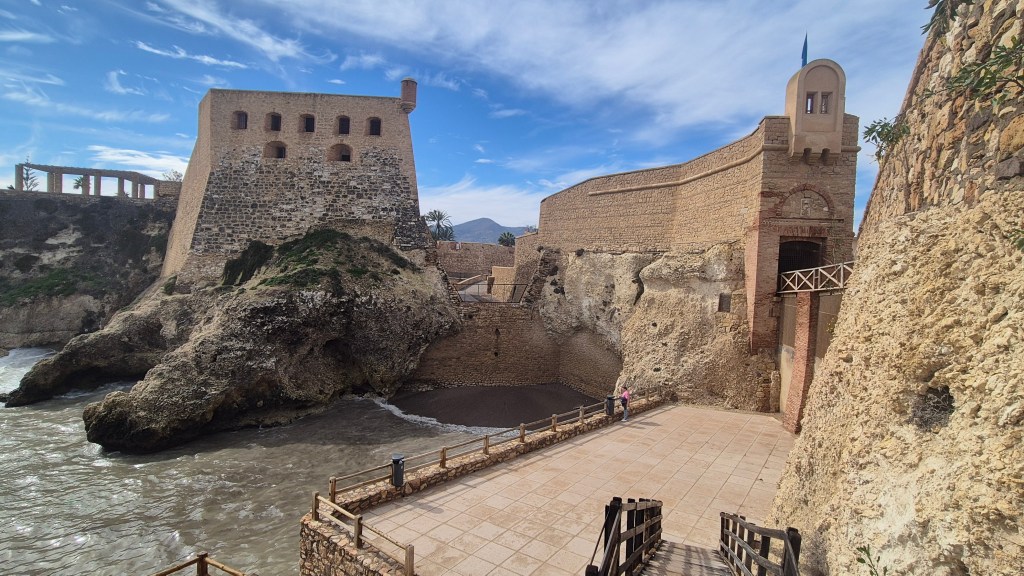 Queremos ir de nuevo a Melilla la Vieja, pero antes iremos al Fuerte de Victoria Grande, el monumento que está más alejado de todo, pero que se llega tranquilamente andando, disfrutando del paseo. Tenemos que subir por la calle de los «chalés caros» y descubrimos otra vista de Melilla la Vieja y de la Ensenada de los Galápagos. Podemos ver el balcón en el que estuvimos en la Casa del Reloj.