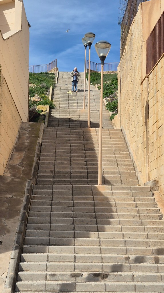 Lo vemos en menos de una hora y vamos bajando hacia la ciudad, descubrimos que hay unas escaleras por las que podemos atajar y llegar antes a la zona de los chalés.