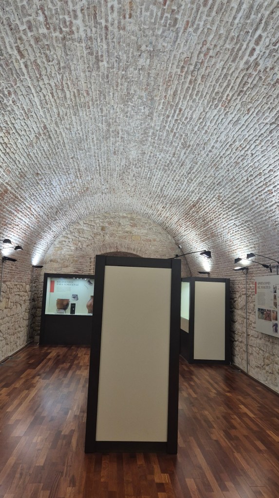 Entramos de nuevo en los Aljibes, no hay nadie y podemos leer tranquilamente los paneles que hay en las salas que son los decantadores.