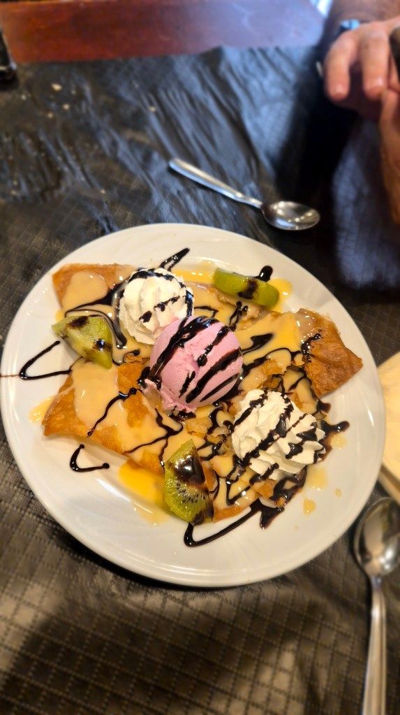 También la tienen fantásticamente montada. Nos da tiempo a comer algo de cena, porque a las 23:15 encienden las luces, echan el cierre, te ponen la cuenta y todo el mundo, sin una protesta y sin que nadie se quede en sus mesas, se levanta y se va, así que es lo que hacemos, nos vamos. No sin pensar que ha sido un día de 10.