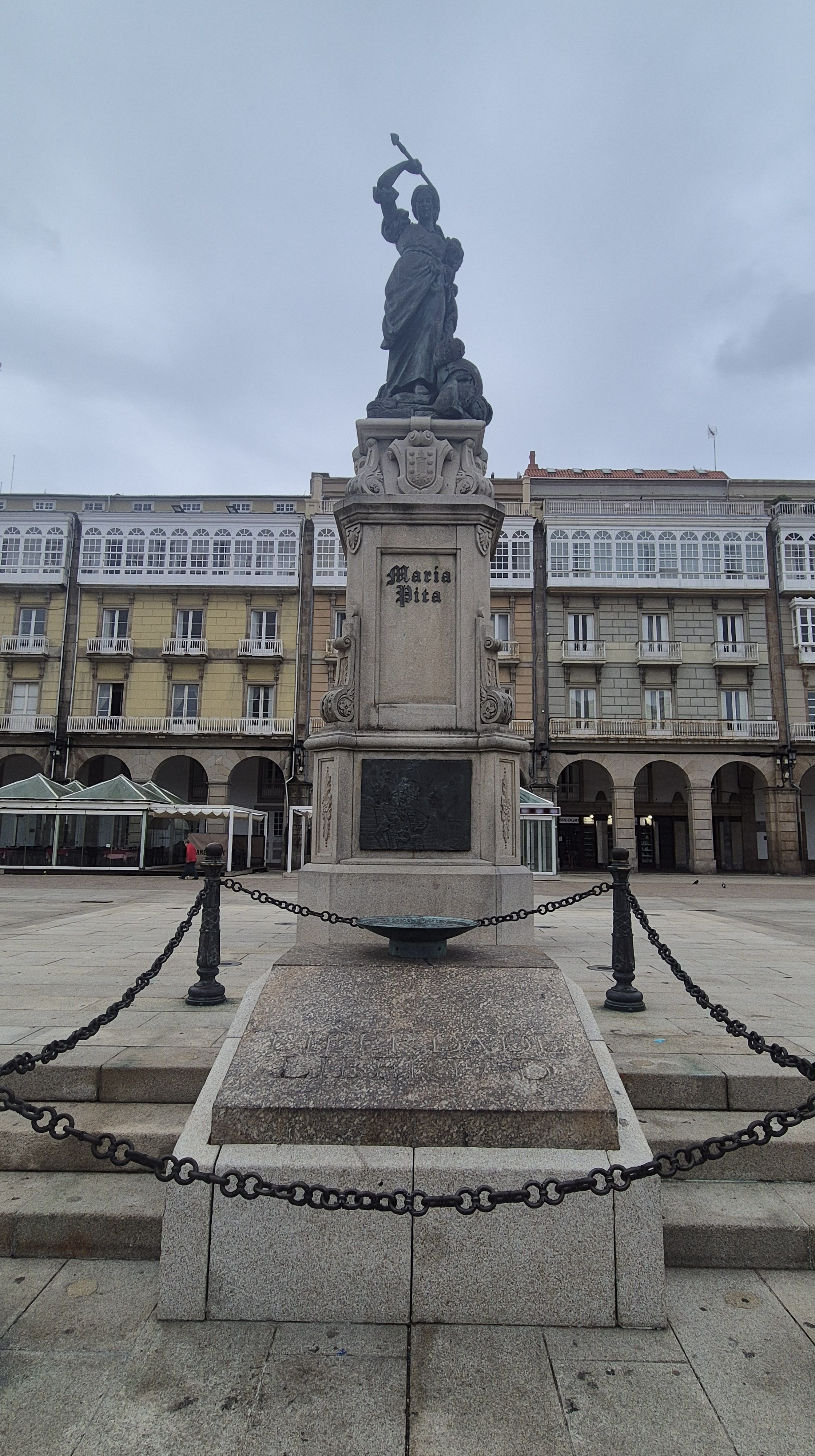 A las 10 de la mañana nos espera en el punto de encuentro Diego, el guía turístico que nos acompañará en nuestro free tour por el centro de A Coruña, lo reservamos con We galicia, (los paraguas azules). El tour dura unas dos horas, comenzando el la estatua de María Pita, pasando por diferentes puntos importantes de la parte vieja de Coruña, para terminar en la playa Orzán.