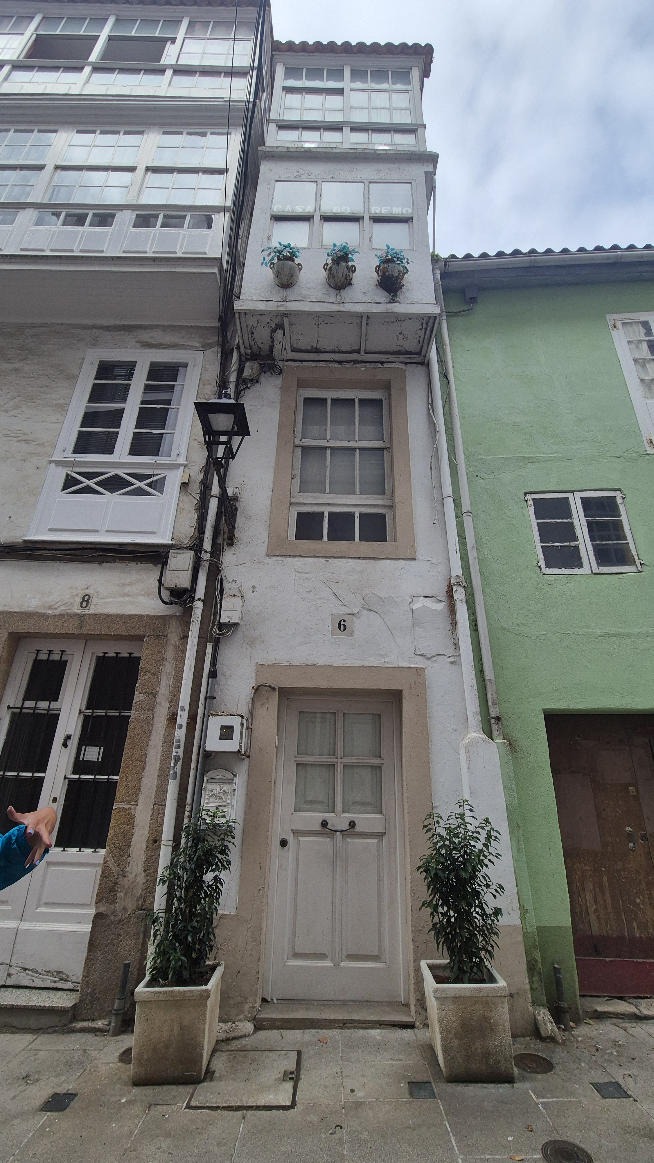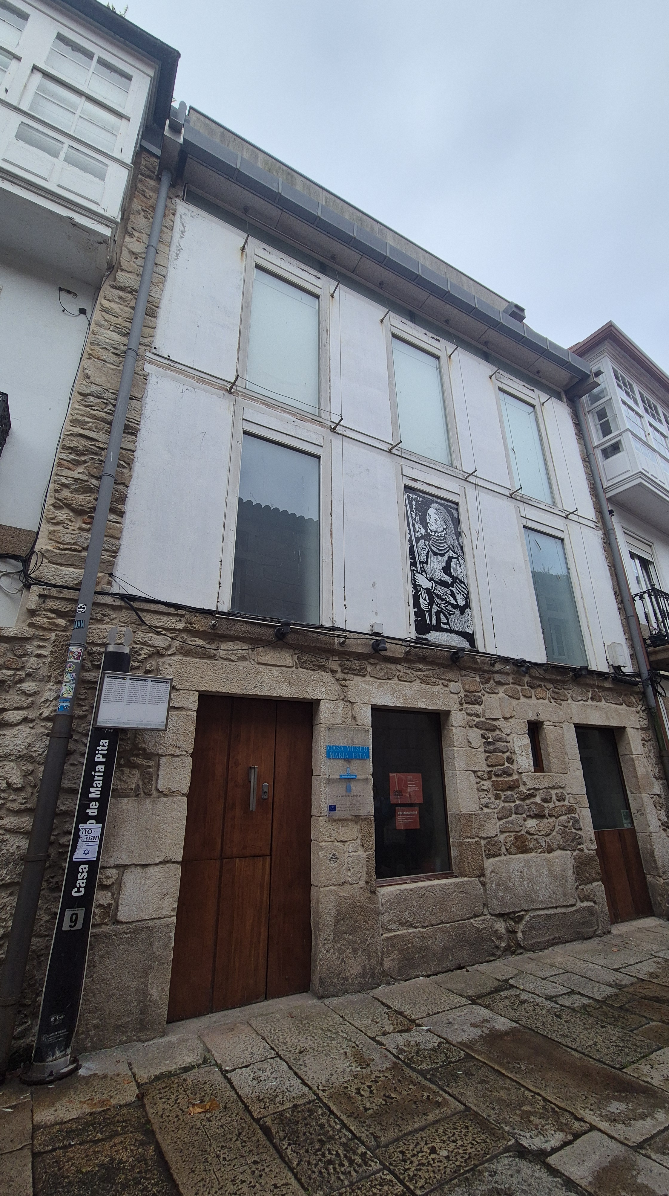 Diego resultó ser un guía estupendo, en las diferentes paradas nos iba contando la historia de Coruña, de Galicia y de algunas de las personas ilustres que por la ciudad pasaron, (alguna otra no tan ilustre también pasó). Solo éramos 5 personas (más él) en la visita, así que, totalmente personalizada. Aprovecha que están engalanando la parte vieja para su mercado medieval, a contarnos, que se realiza todos los veranos (empieza justo cuando nos vamos a la Costa da Morte). Plazas poco conocidas con historias, edificios interesantes, no entramos en ninguno porque el tour no incluye las visitas a los interiores, pero así podremos entrar al día siguiente…