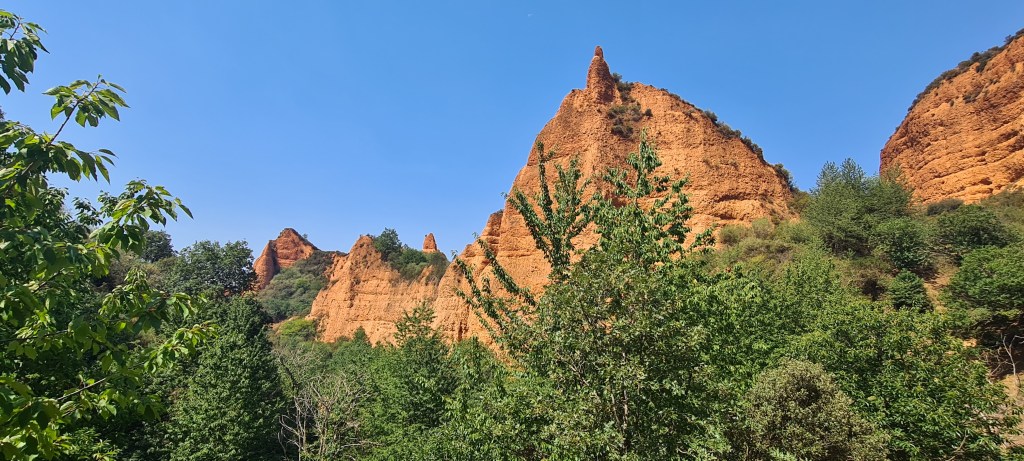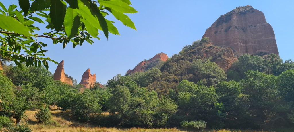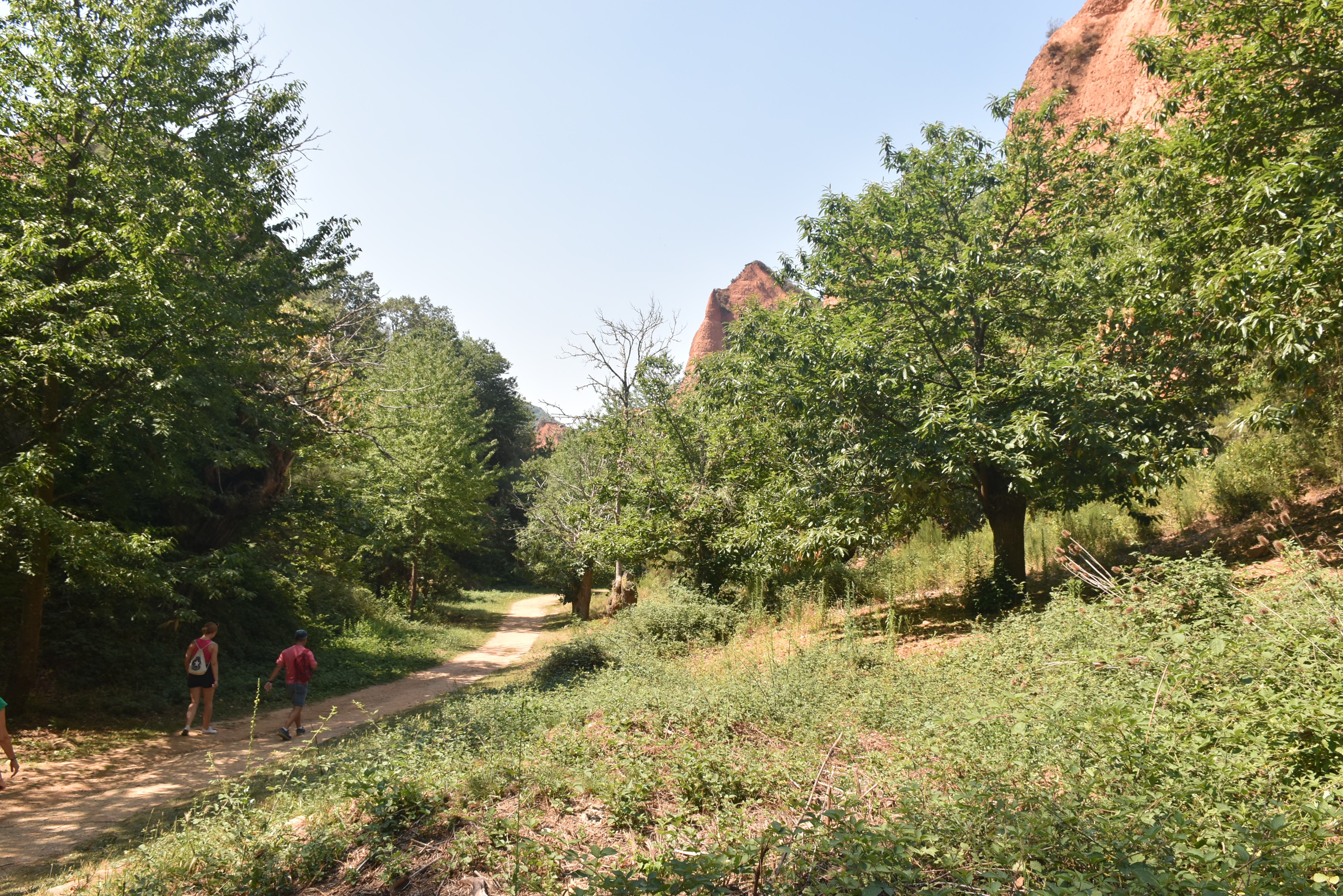 Es diferente a las imágenes que tenemos de Las Médulas, casi siempre desde arriba, desde el mirador de Orellán. En esta ruta caminamos viendo esas moles de roca desde abajo, es igualmente espectacular.