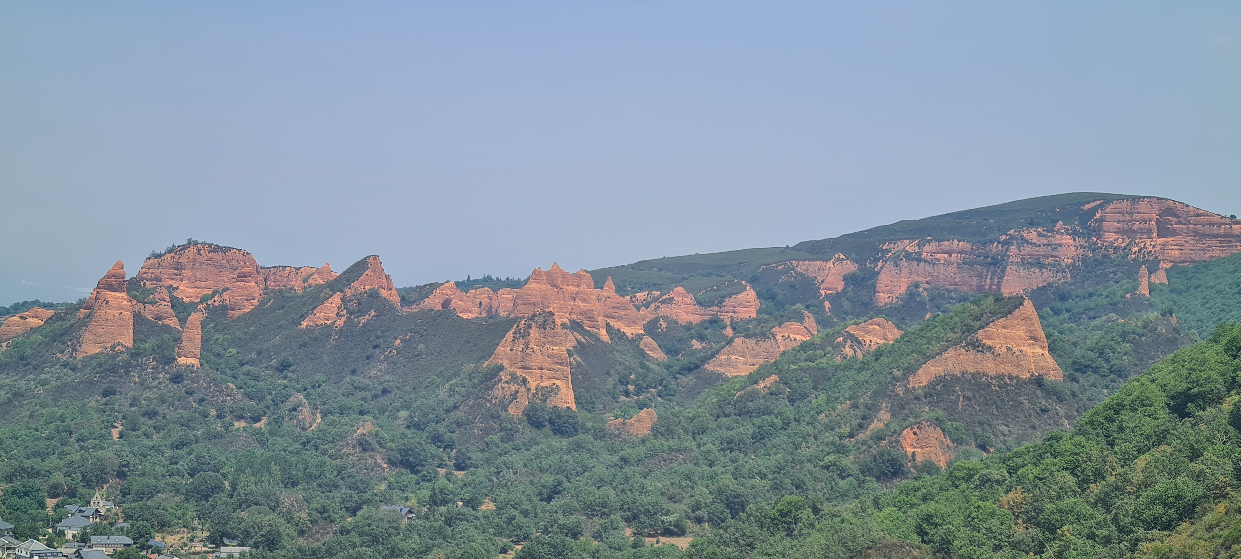 Llegamos a una parada obligada, en verano muchísimo calor, pero bueno, es el Mirador de Las Pedrices. Desde aquí podemos ver las vistas de Las Médulas y del pueblo.