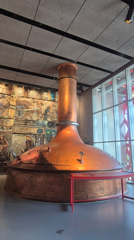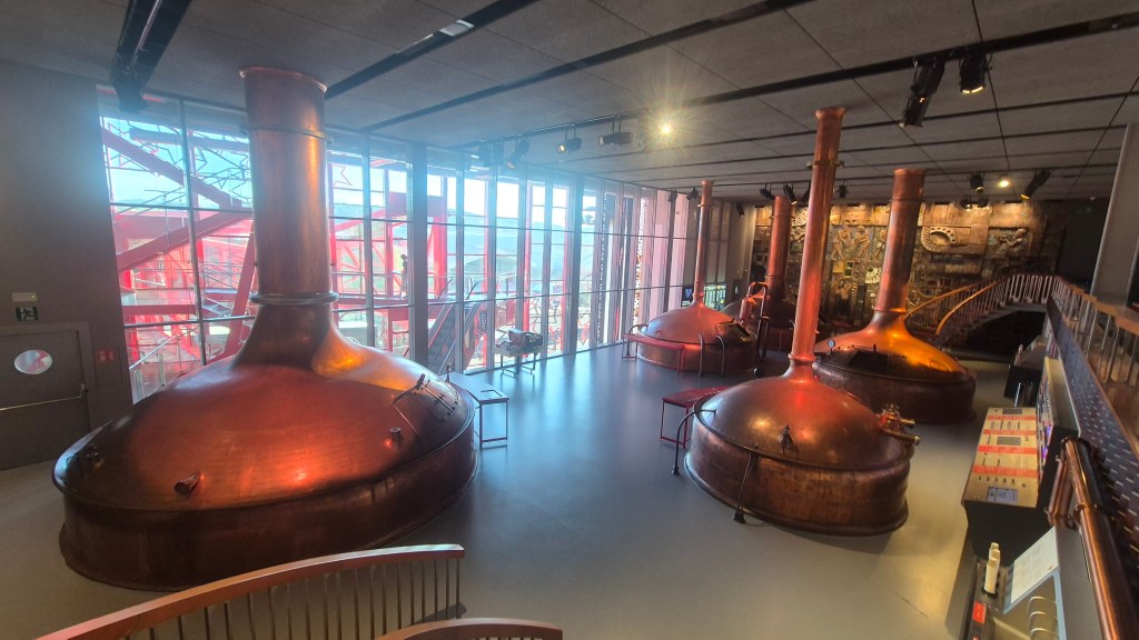Entramos en una pequeña sala, que resulta ser un ascensor, pero parece que estamos dentro de un tanque de cerveza y nos llevan a otra zona de la instalación. ¡Lo tienen montado genial! No falta detalle y tan solo 16 personas (más o menos) realizamos la visita, lo que significa que es muy personalizada. ¡El guía chapó!