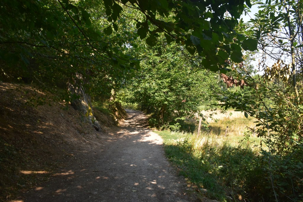 Dejamos la gasolinera y el camino de tierra a la derecha, entrando de lleno en la antigua N-1. Hay que pasar por una puerta metálica (abierta por el centro) hasta un desvío en el que empieza un camino estrecho de tierra con dos postes. (Desde ahí ya no está señalizado).