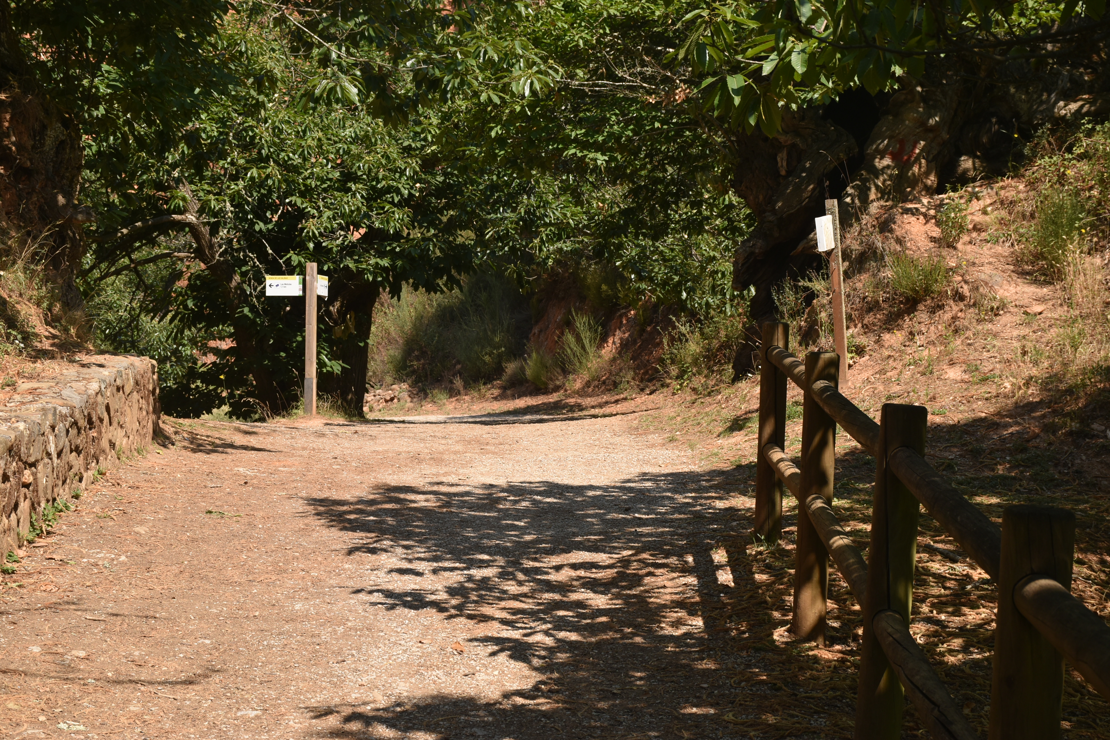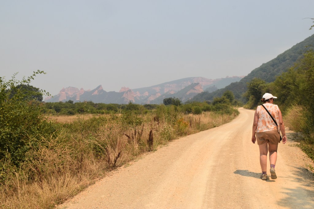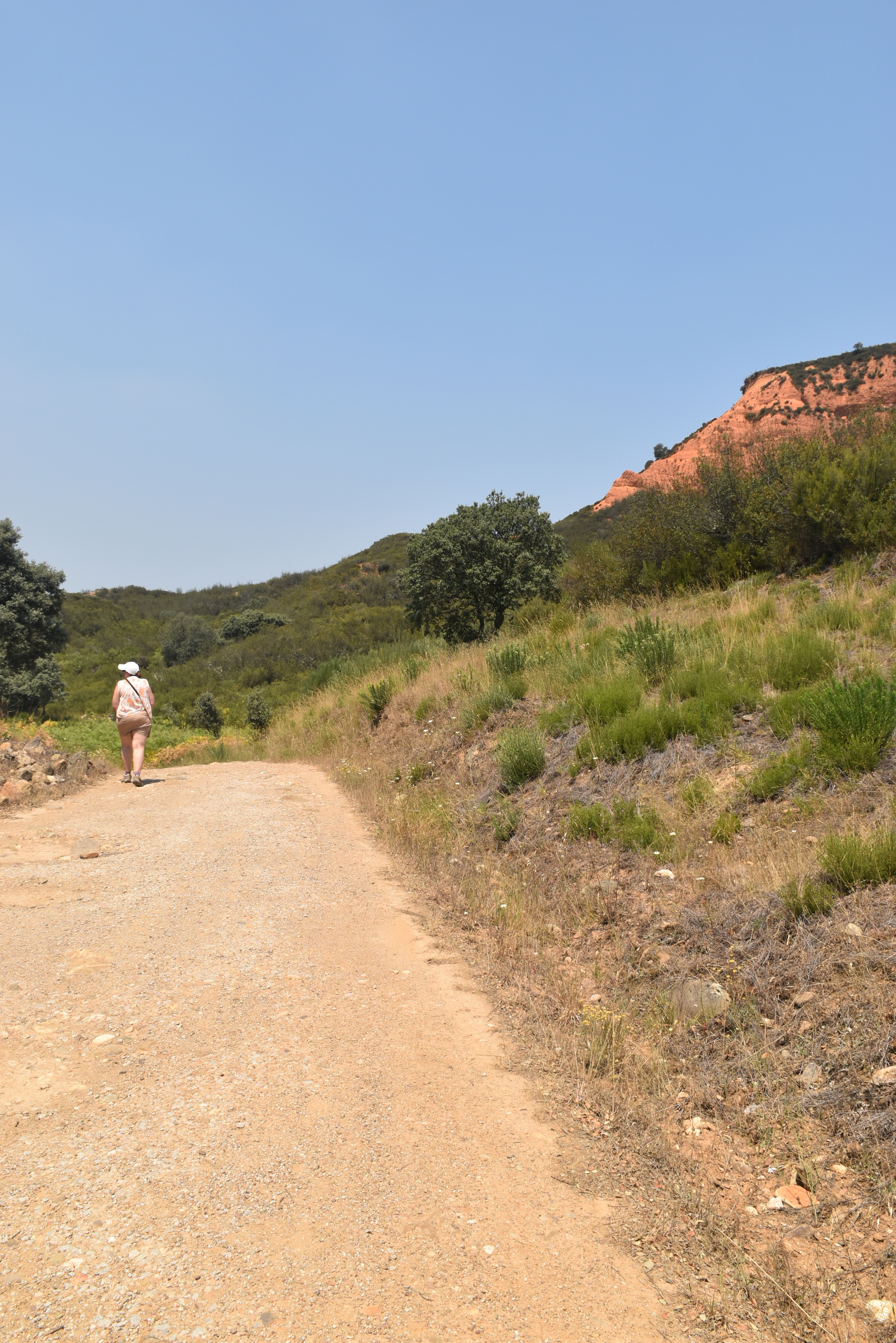 Es la más larga que hay en las Médulas, (estábamos en forma por eso no nos preocupa), esos sí elegimos el día de más calor del verano…🌞😎 (como parece nuestra costumbre). Empezamos a seguir el camino rosa de las señales.