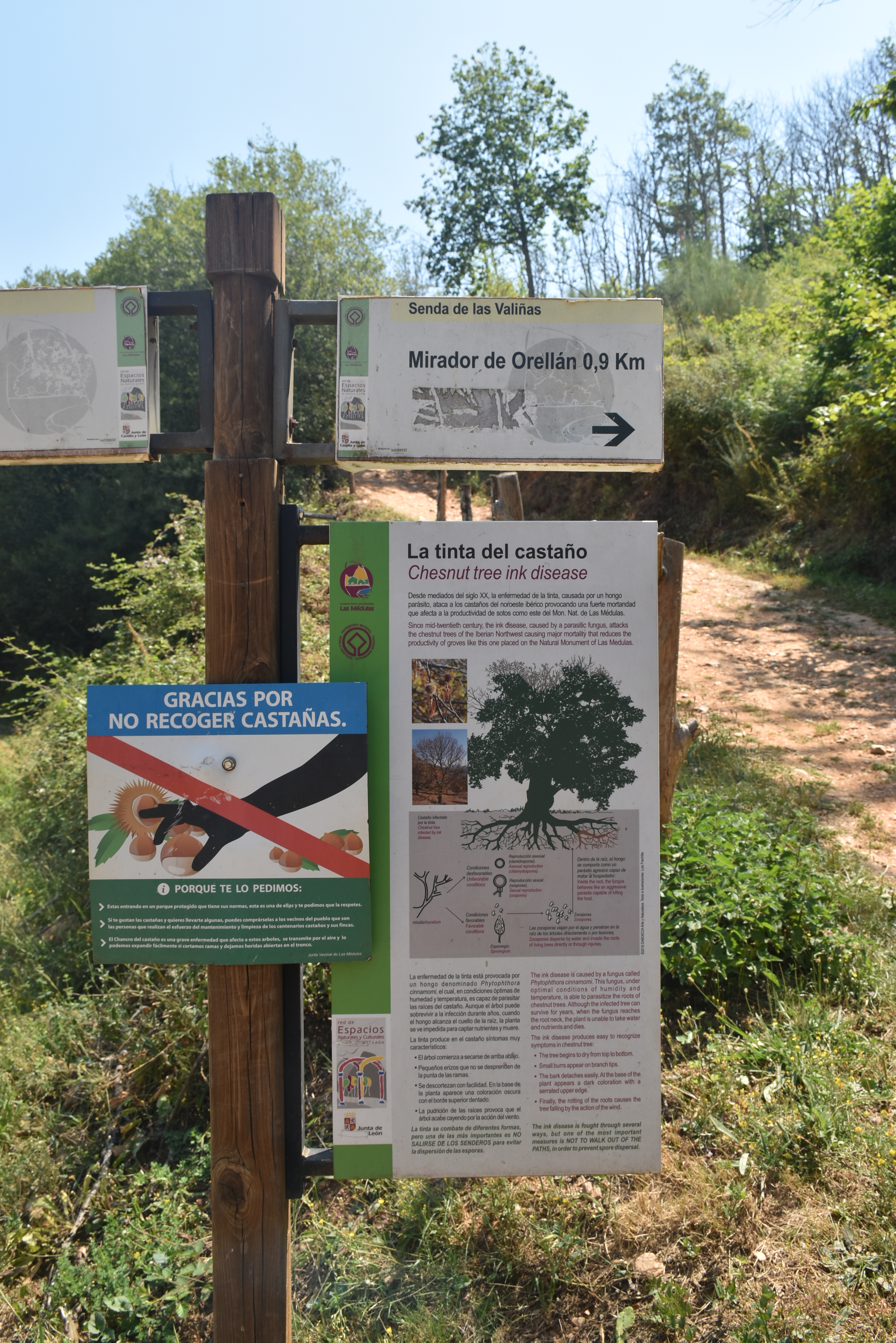 Nos adentramos entre castaños con una ligera subida, sin dificultad, en la que el guía nos va contando qué vamos a ver y qué son Las Médulas.
