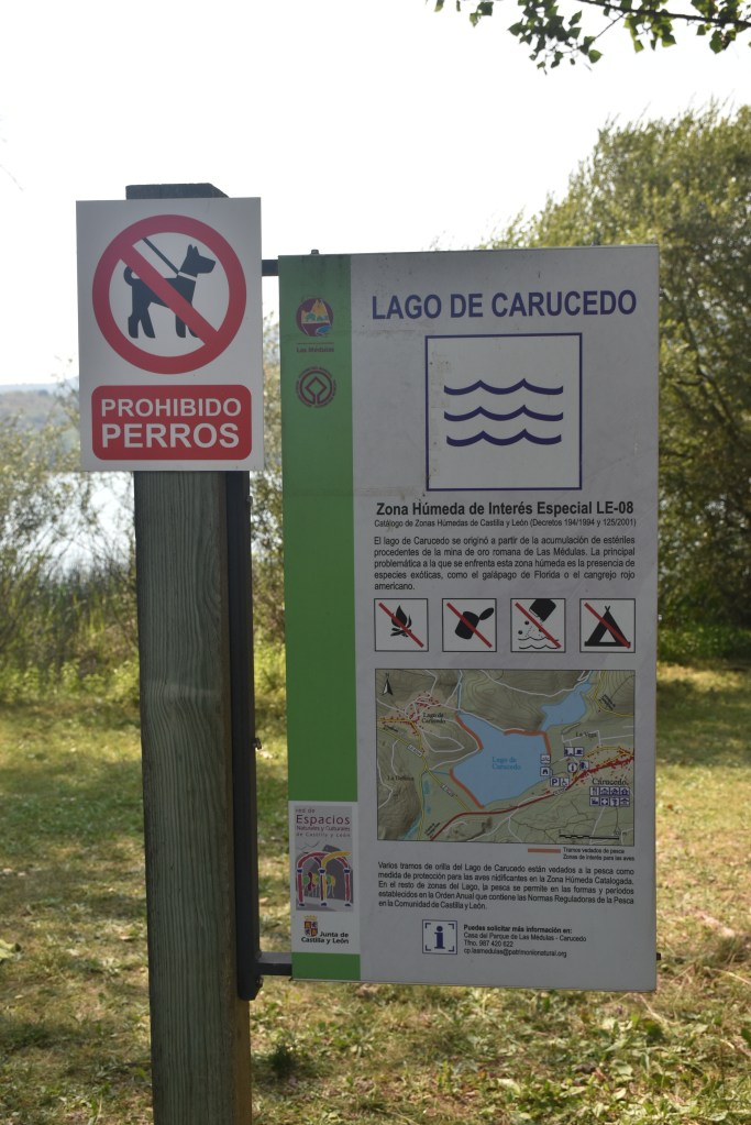 Antes de irnos a nuestro hotel Palacio de Canedo, queremos darnos un baño, creo que es lo único que nos va a quitar el calor y nos vamos al Lago de Carucedo y a su playa fluvial. (Bañador y toalla siempre tienen que ir en el coche).