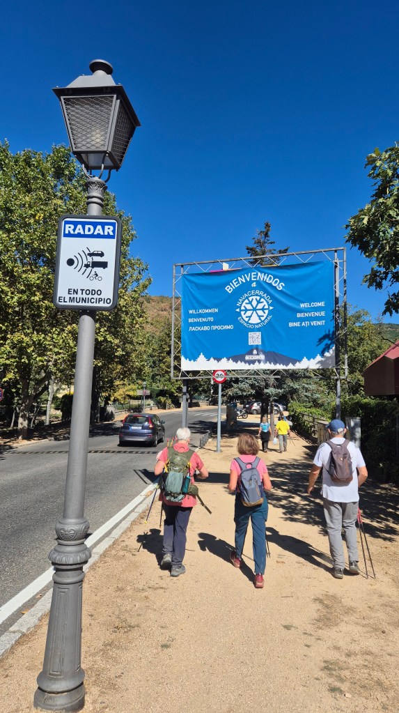 Aparcamos en la Ermita de Nuestra Señora de la Soledad en el Puerto de Somosierra y sacamos los bastones, dirección al salto de agua por la antigua N-1 (está señalizado desde ese mismo punto), puedes ir pasando por debajo del puente que te lleva al otro lado de la N-1 o bien cruzar esta carretera que tiene pasos de peatones. Nosotros hicimos esto último.