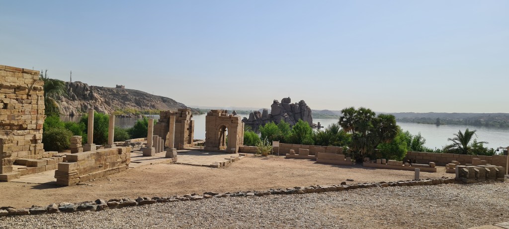 Solo se puede acceder en barca, lo que convierte la llegada en una experiencia diferente. En la barca va un niño nubio que quiere vendernos todos los objetos que lleva para los turistas, ¡tiene unos ojos! Al desembarcar nos encontramos con el Quiosco de Nectanebo I, edificio más antiguo del recinto, dándonos la bienvenida al templo.