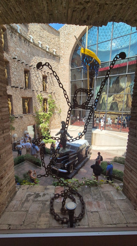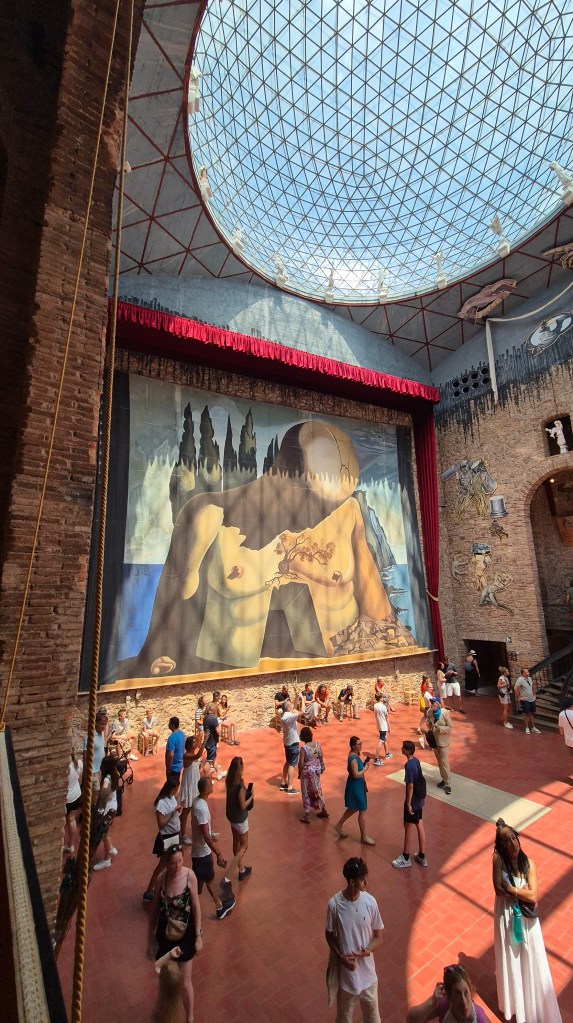 Al principio parecía que no nos importaría no hacer turismo, solo queríamos descansar de un año duro, pero… para nosotros eso es muy difícil… en el fondo se puede combinar, un poco de turismo con un poco de descanso. Vimos que estabamos a media hora en coche de Figueras y sacamos las entradas para el Teatro-Museo Dalí-Figueres.