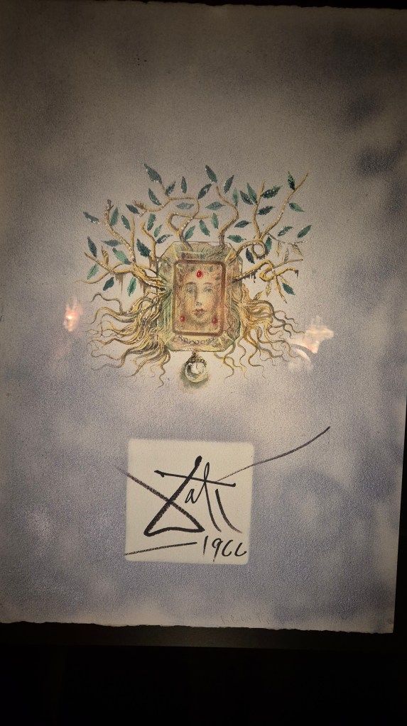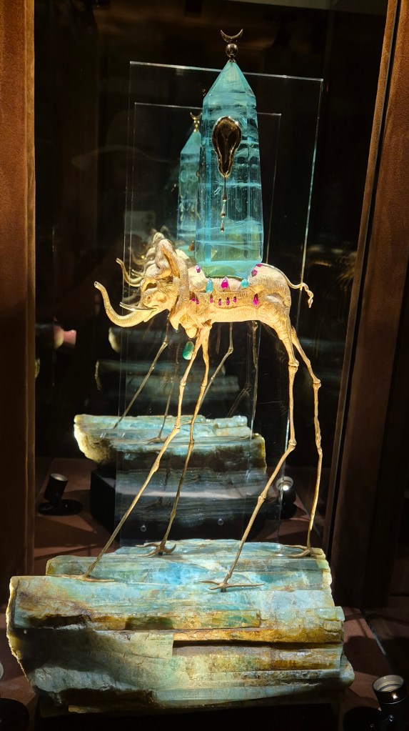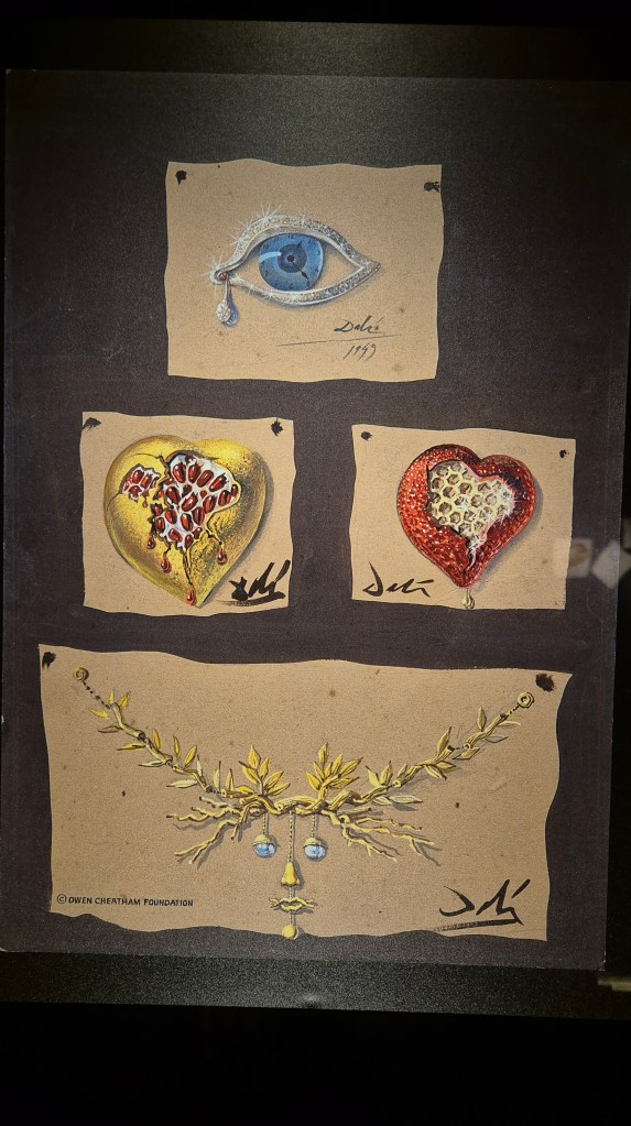 Una última locura surrealista es la exposición Dalí-Joyas. Ahí podemos ver los dibujos realizados por Dalí para el diseño de joyas, desde luego que no para el uso diario. Además de los dibujos están las joyas en cuestión, y quién y cuándo las llevó. Y por supuesto con piedras y metales de lo más precioso y preciado.